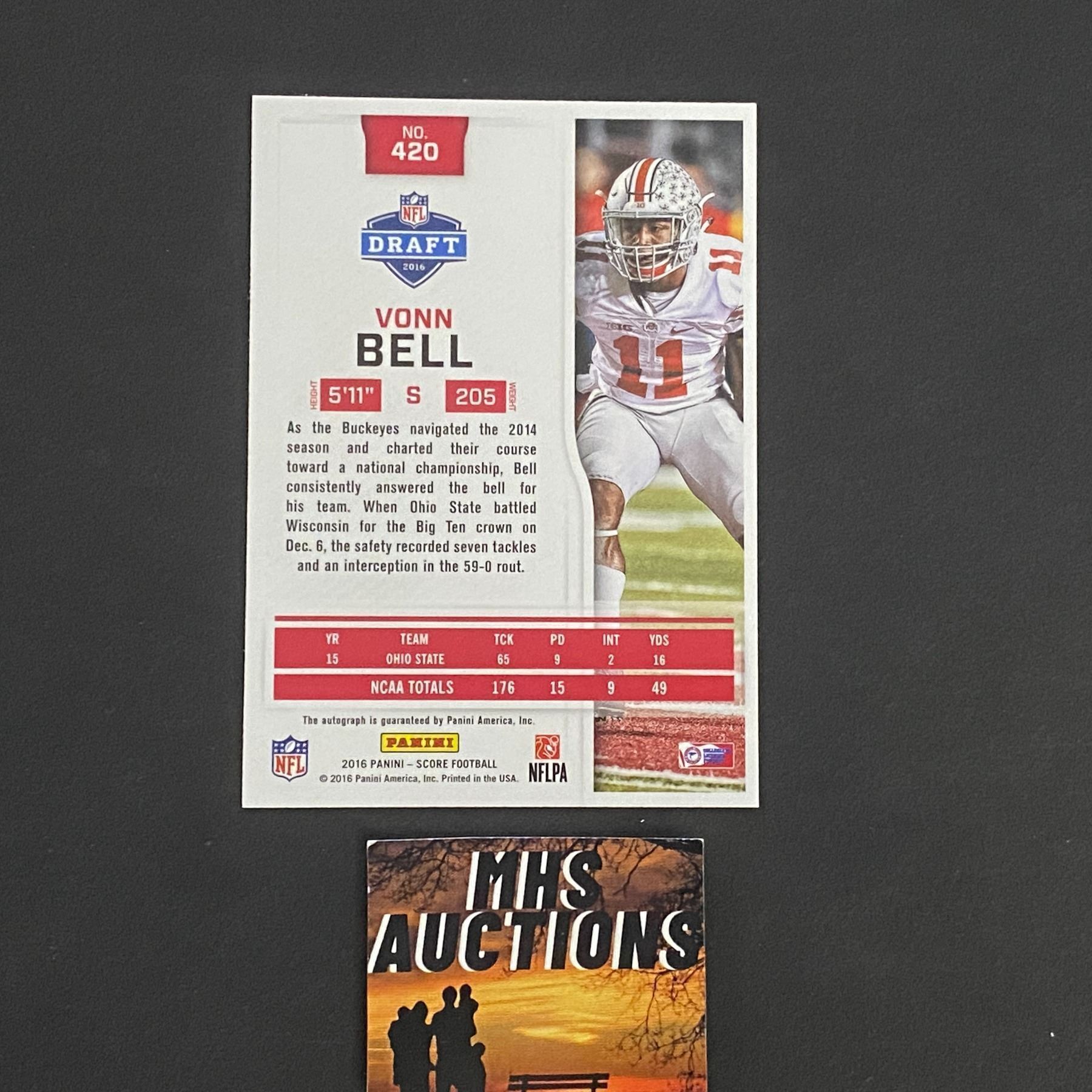 VONN BELL 2016 PANINI AUTOGRAPH FOOTBALL CARD
