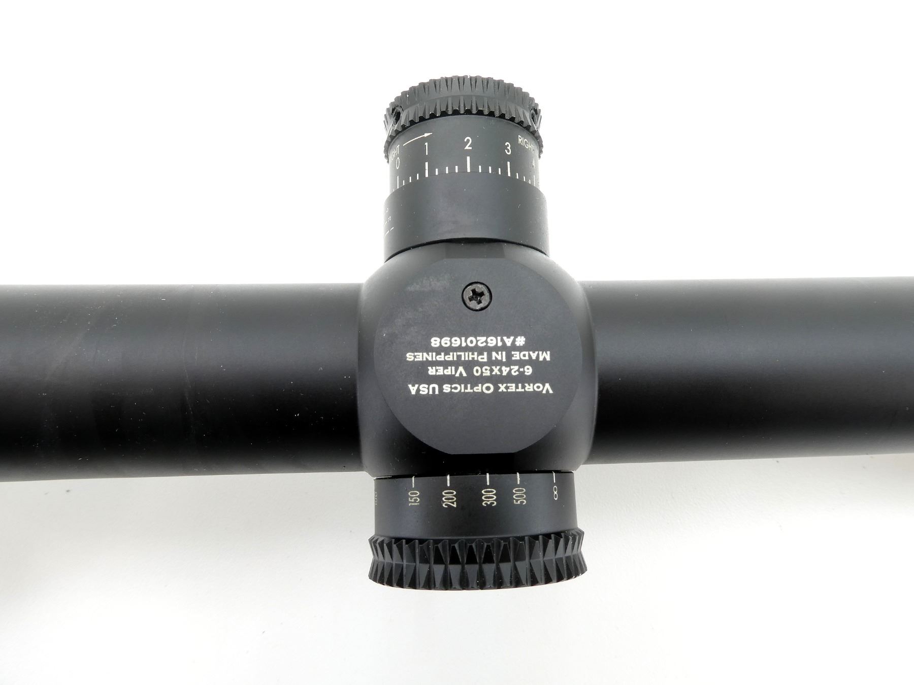 (1) CLEAR OPTICS, UNKNOWN ILLUMINATED (WORKS) RETICLE, 30MM TUBE DIAMETER, WORKING MAGNIFICATION RING, WINDAGE & ELEVATION KNOBS TURN, MARKED: "VORTEX", "VIPER", "A16201698", ETC., WITH LENS COVERS, SHOWS LIGHT WEAR & TEAR / USE MARKINGS. MAY REQUIRE FITTING. SEE PHOTOS.