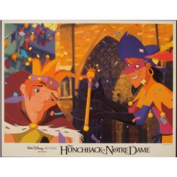 This is an original lobby card from the 1996 Disney animated feature "The Hunchback of Notre Dame." Quasimodo enjoys being crowned King o...