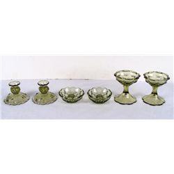 6 Fenton Candle Holders Colonial Green Rose, Thumbprint