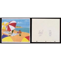 Taking a lovely stroll down the train tracks, through the mountains... * * * Original Animated Cel with Painted Background * * Overall Size of the