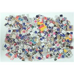Here are hundreds of unsorted, uncounted postage stamps from Great Britain. All are used, with postmarks, some on portions of envelopes. They include