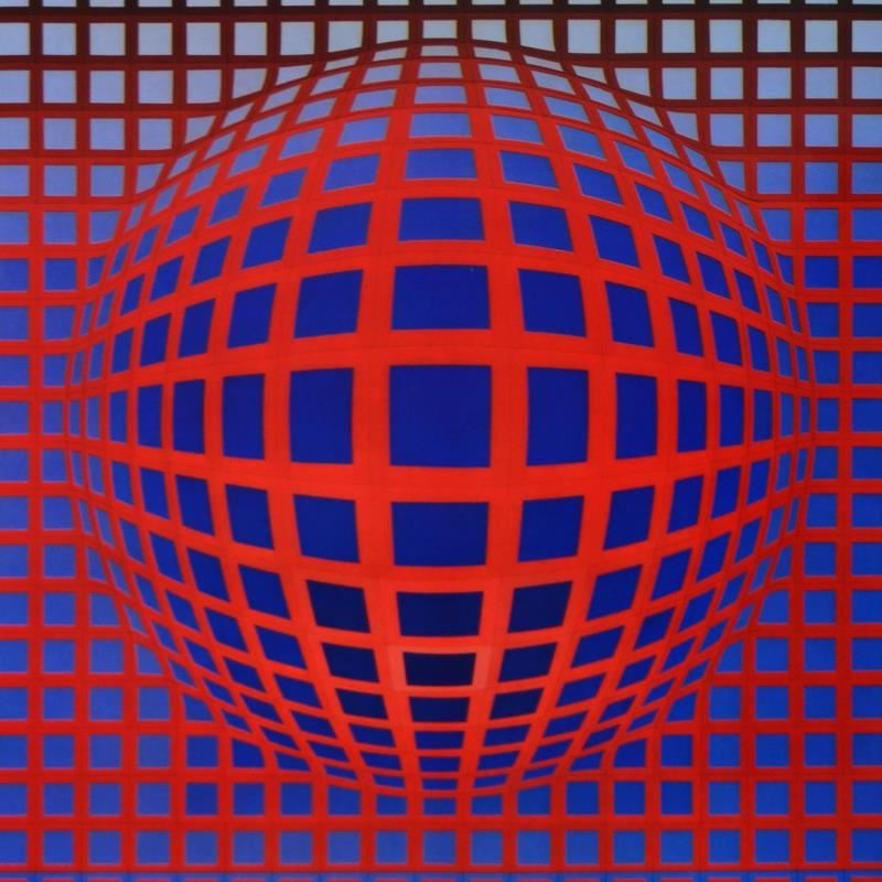 "VP-RB" is a heliogravure print on paper from the Editions du Griffon (1971) by Victor Vasarely (1908-1997). This piece is titled inverso. Measures approx. 17.5" x 31.5" (image).