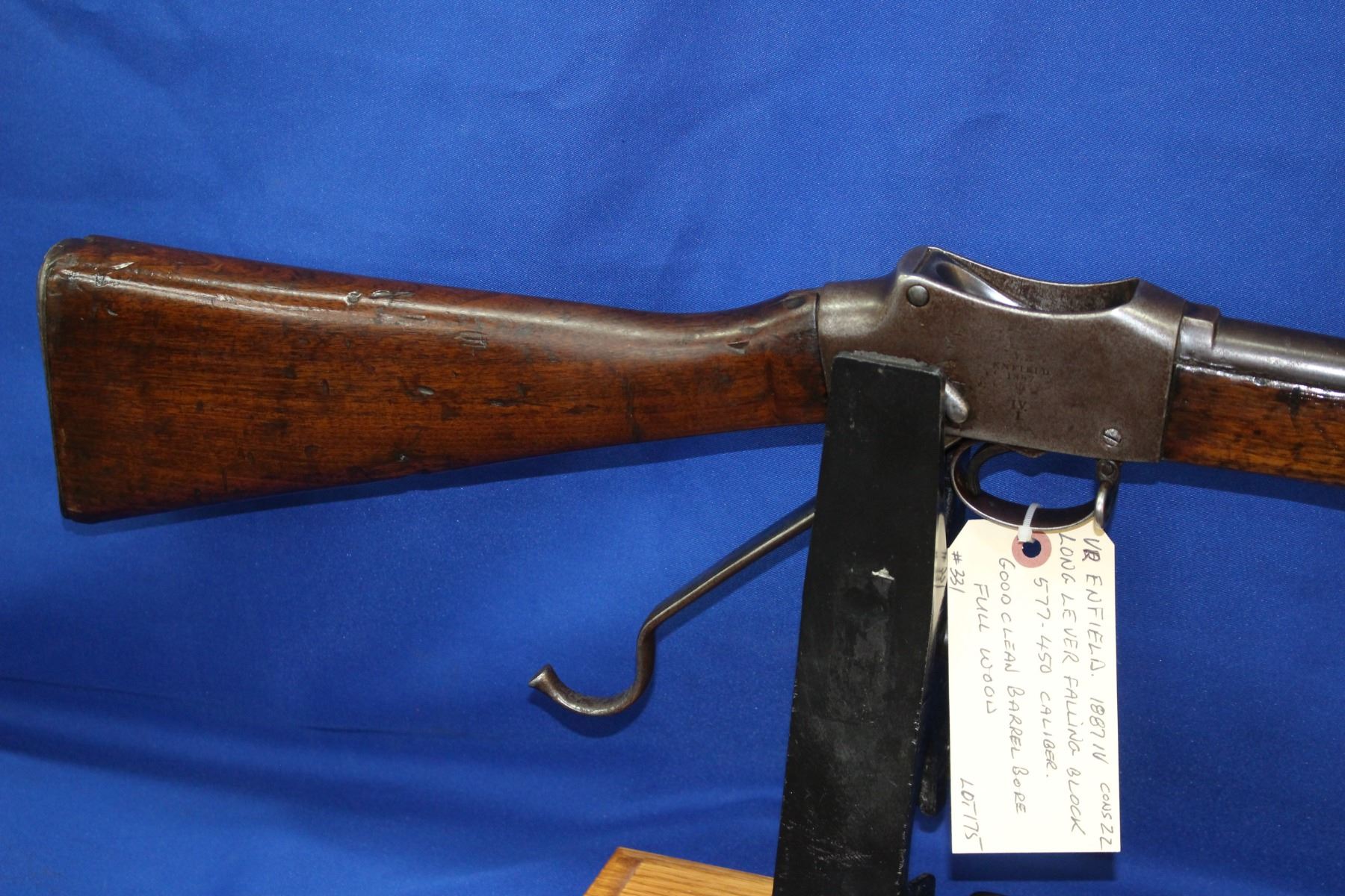 577-450; Long Lever Falling Block; Good, Clean Barrel/Bore; Full Wood; S/N 331