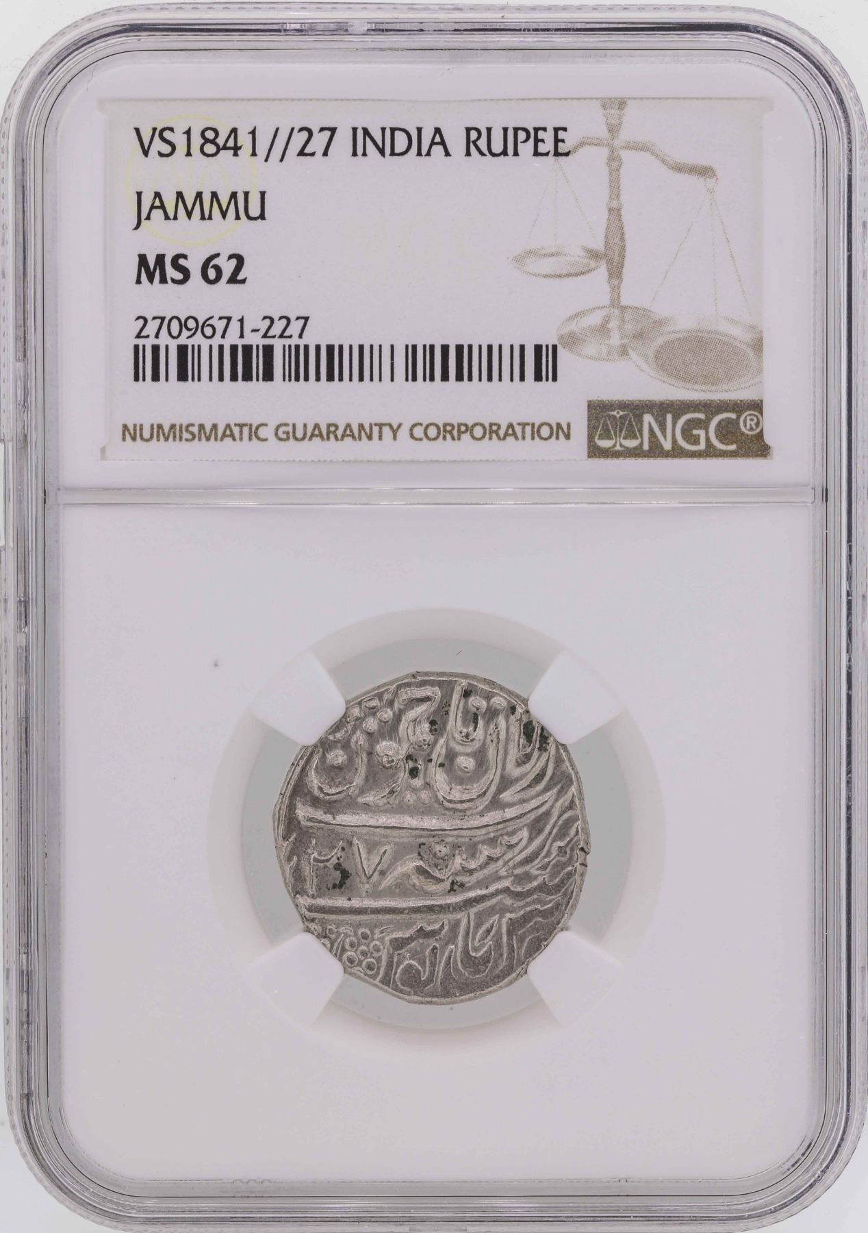 One VS1841//27 India Rupee Jammu Coin NGC MS62.