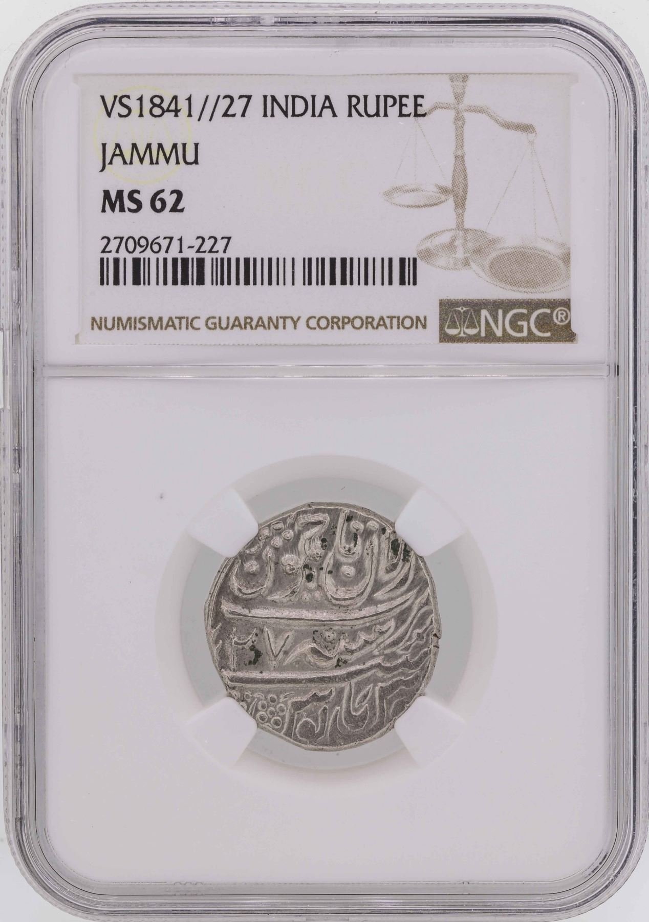 One VS1841//27 India Rupee Jammu Coin NGC MS62.