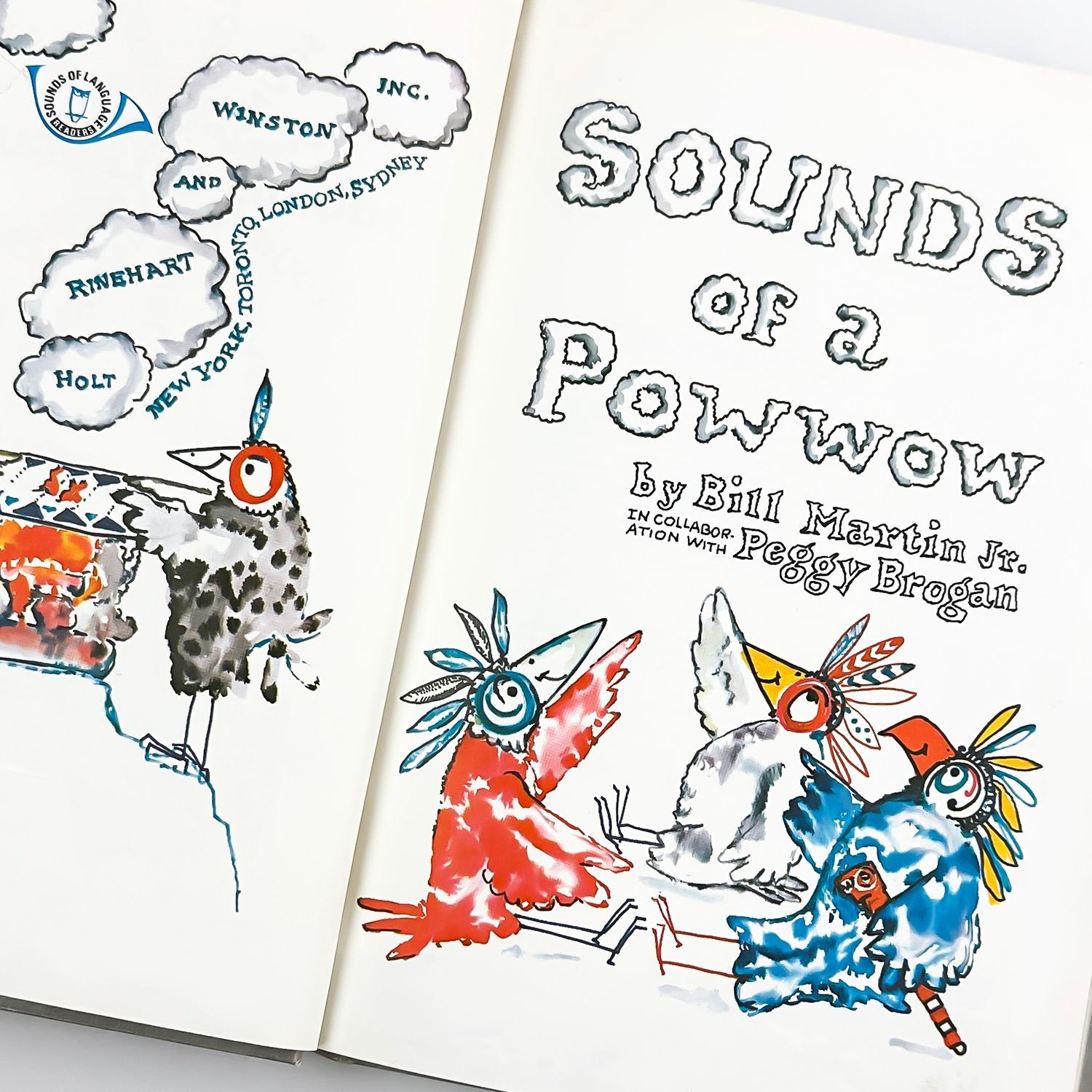 #8184 - VINTAGE SOUNDS OF POWWOW BOOK BY BILL MARTIN JR. & PEGGY BROGAN. COPYRIGHT 1970 HOLT, RINEHART AND WINSTON INC. HARDCOVER BOOK - 224 PAGES. MEASURES: 9.25” BY 6.5”