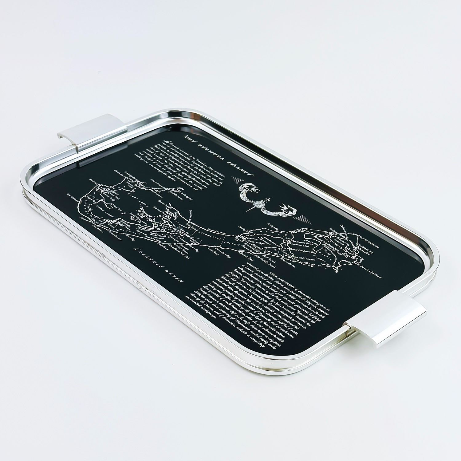#8989 - TRAY IS MADE OF METAL WITH A DESCRIPTIVE MAP OF THE BERMUDA ISLANDS. MADE BY WOODMET LIMITED - ENGLAND. MEASURES: 18” (46 CM) LONG BY 9.75” (24.5 CM) WIDE