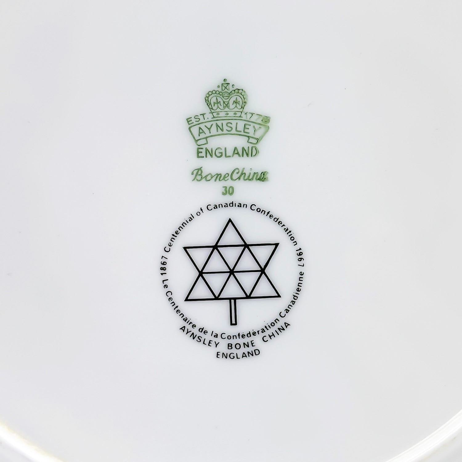 #8178 - CANADIAN CENTENNIAL CONFEDERATION 1867-1967 PLATE - CANADA COAT OF ARMS DESIGN. AYNSLEY BONE CHINA ENGLAND. MEASURES: 10.5” (26.5 CM) DIAMETER