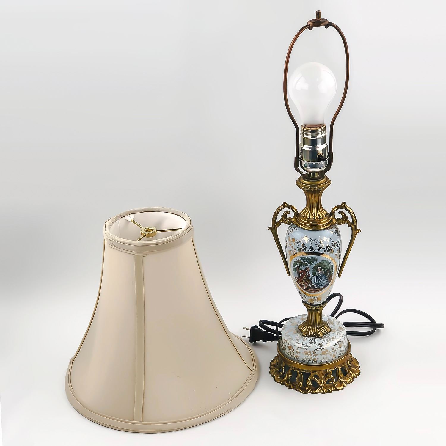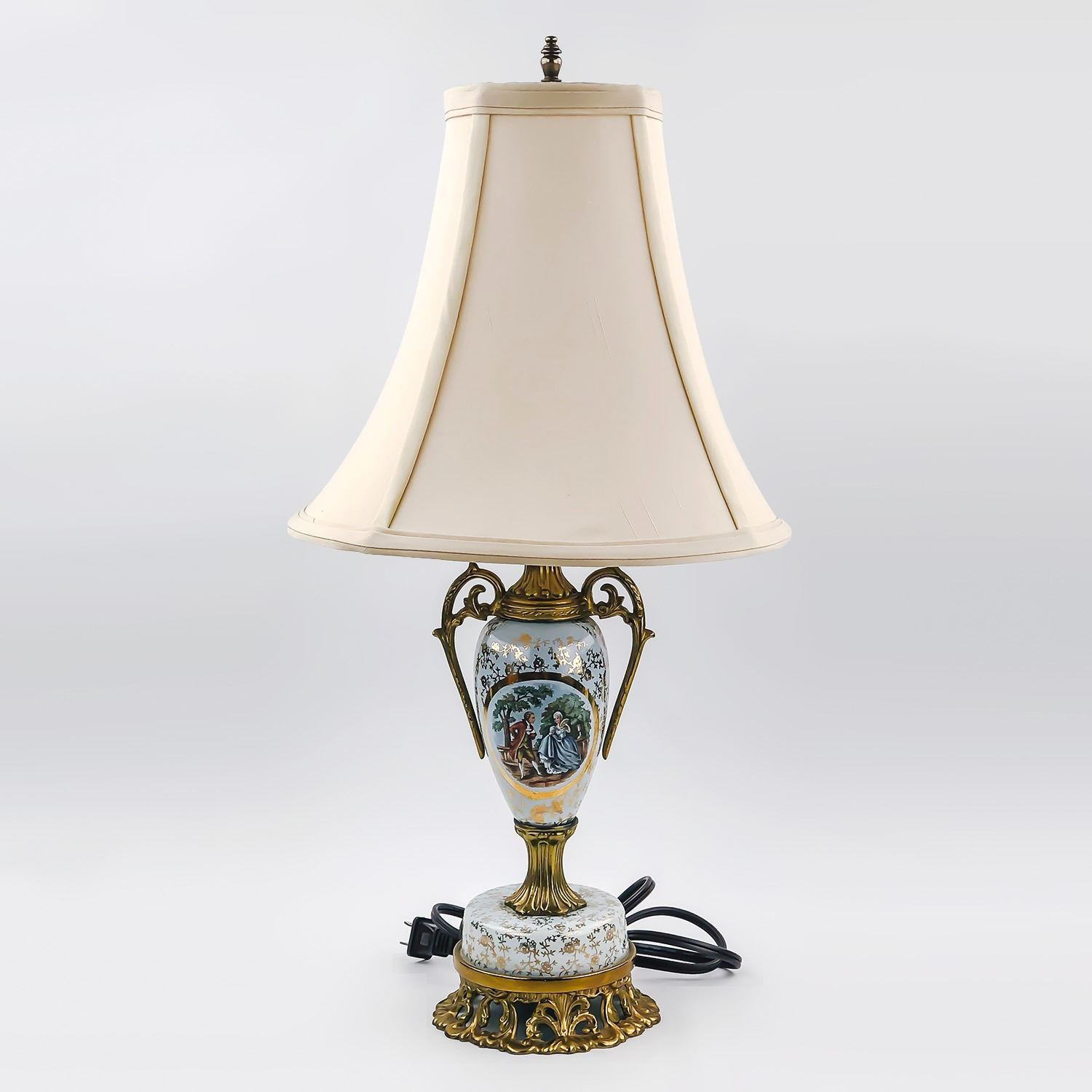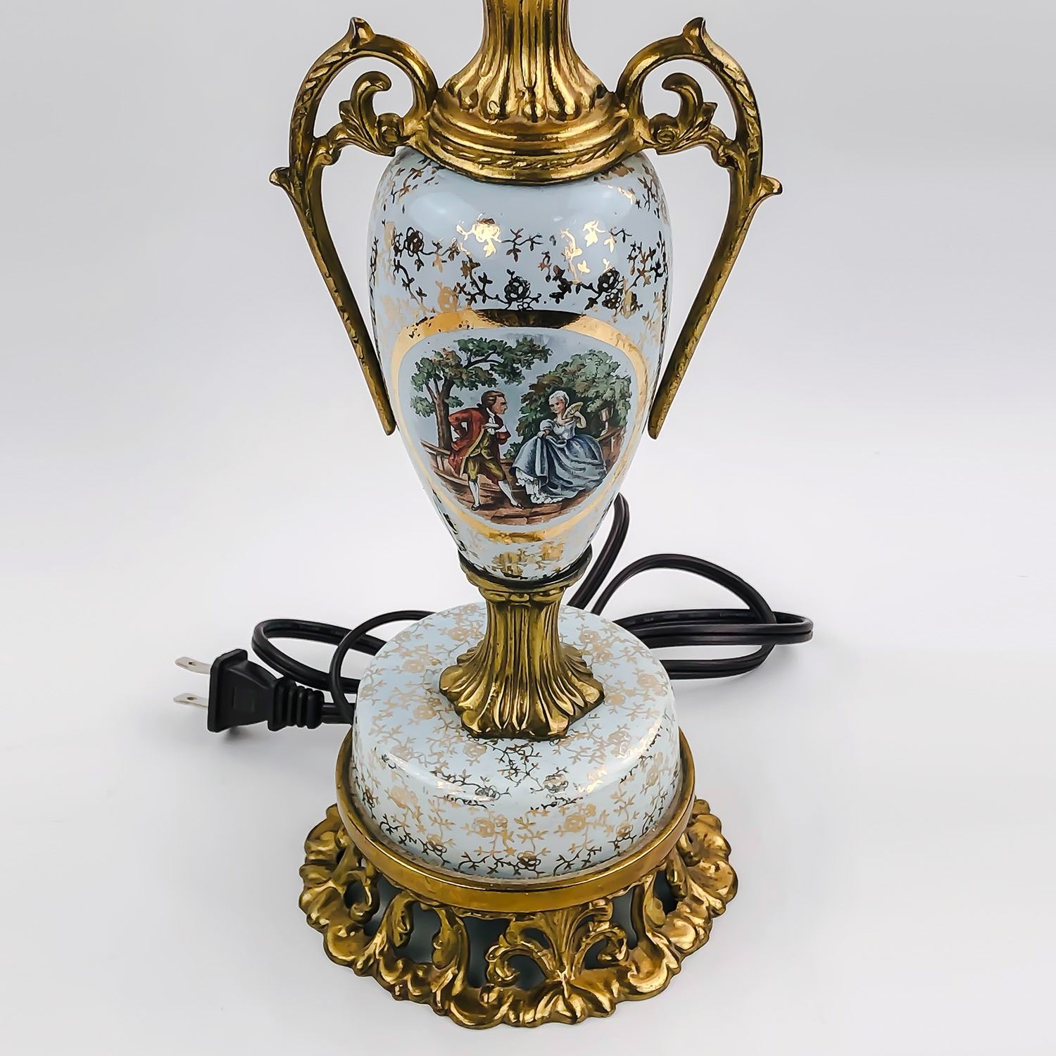 #9334 - VINTAGE TABLE LAMP WITH A VICTORIAN MOTIF - LAMP WORKS. NO MAKERS MARK, INTERESTING OLD TABLE LAMP. MEASURES: 21.5” (54 CM) HIGH WITH A BASE DIAMETER OF 5” (12.5 CM)***ITEM(S) LOCATED IN LETHBRIDGE ALBERTA. ALL ITEMS IN THIS AUCTION QUALIFY FOR OUR FREE TRANSPORT TO EDMONTON SERVICE. WORLDWIDE SHIPPING AVAILABLE