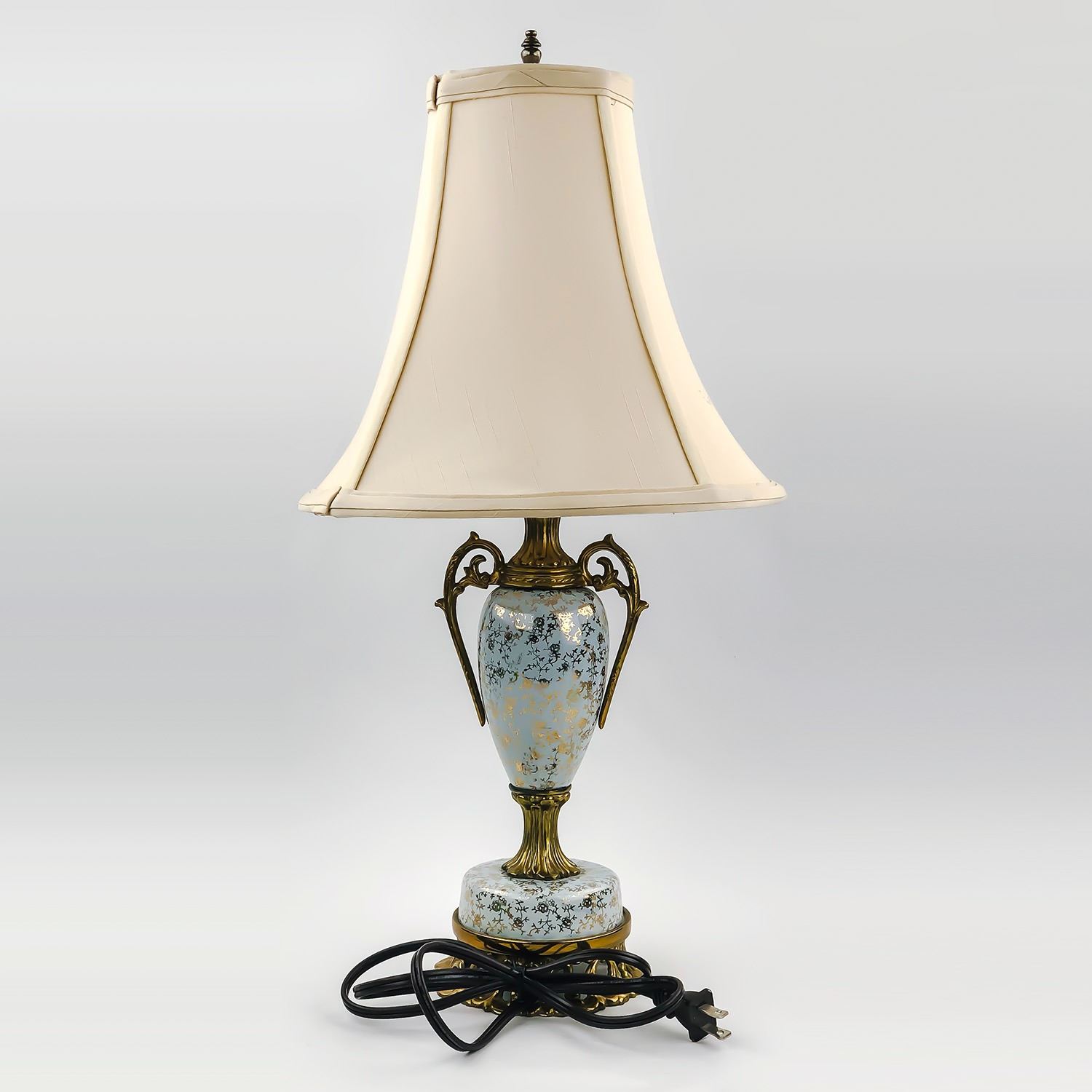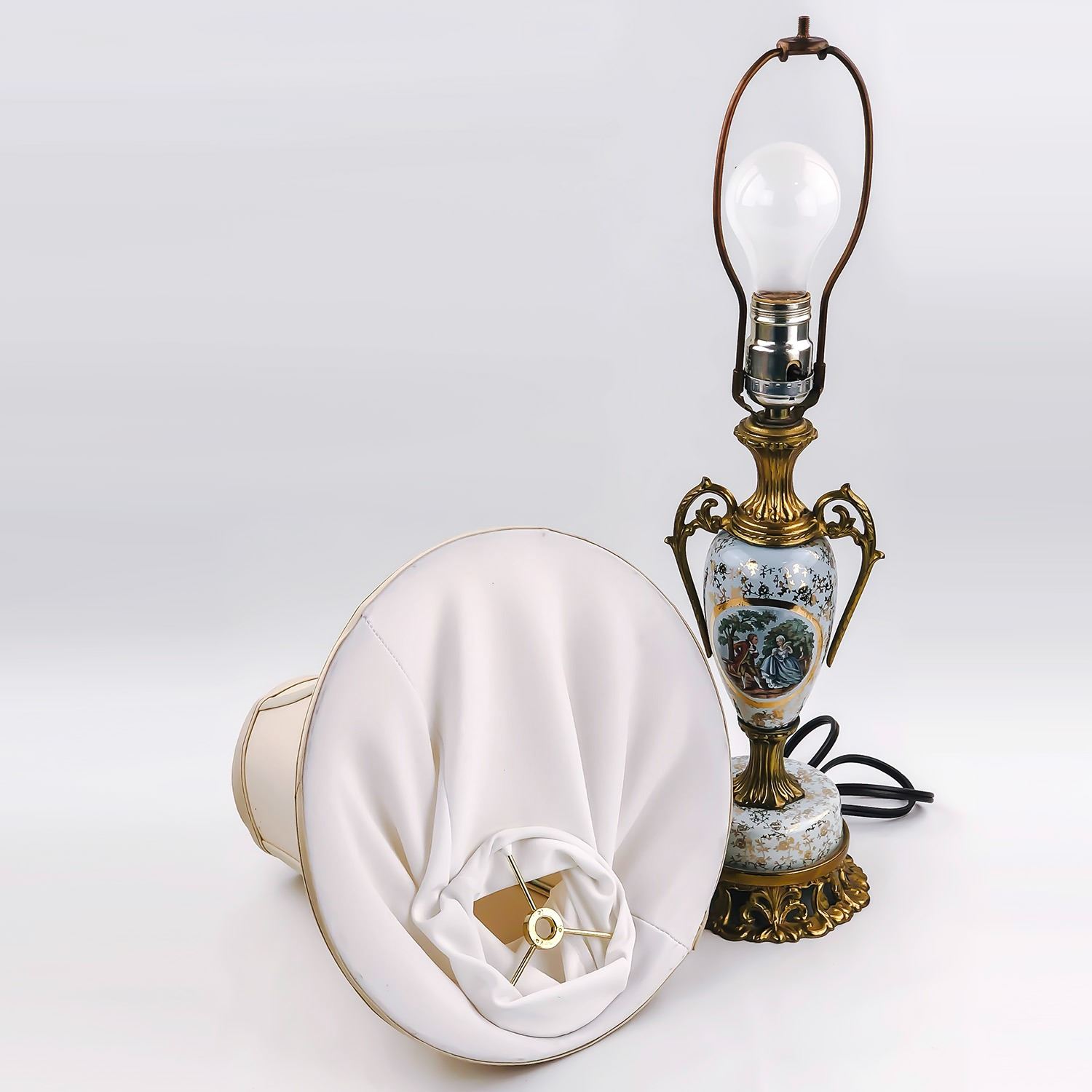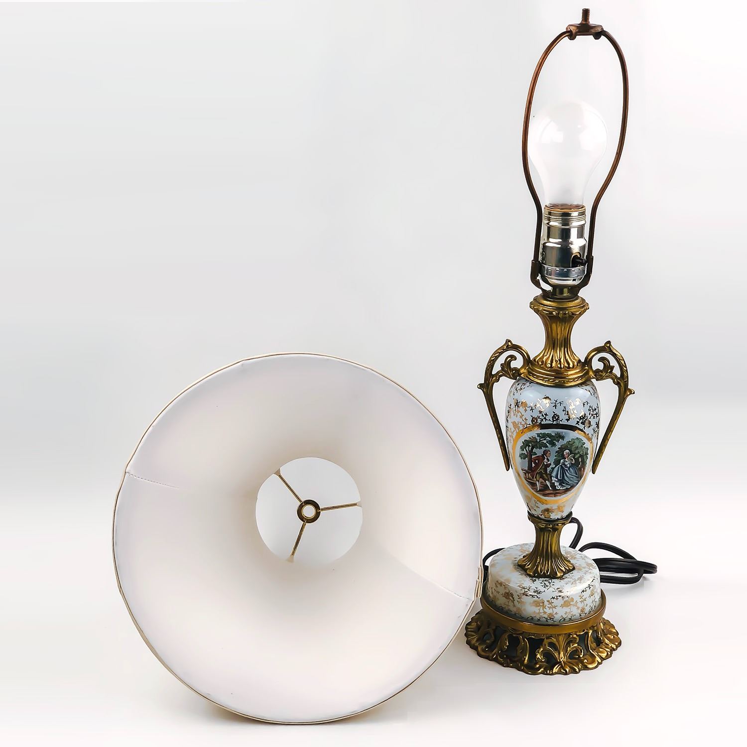 #9334 - VINTAGE TABLE LAMP WITH A VICTORIAN MOTIF - LAMP WORKS. NO MAKERS MARK, INTERESTING OLD TABLE LAMP. MEASURES: 21.5” (54 CM) HIGH WITH A BASE DIAMETER OF 5” (12.5 CM)***ITEM(S) LOCATED IN LETHBRIDGE ALBERTA. ALL ITEMS IN THIS AUCTION QUALIFY FOR OUR FREE TRANSPORT TO EDMONTON SERVICE. WORLDWIDE SHIPPING AVAILABLE