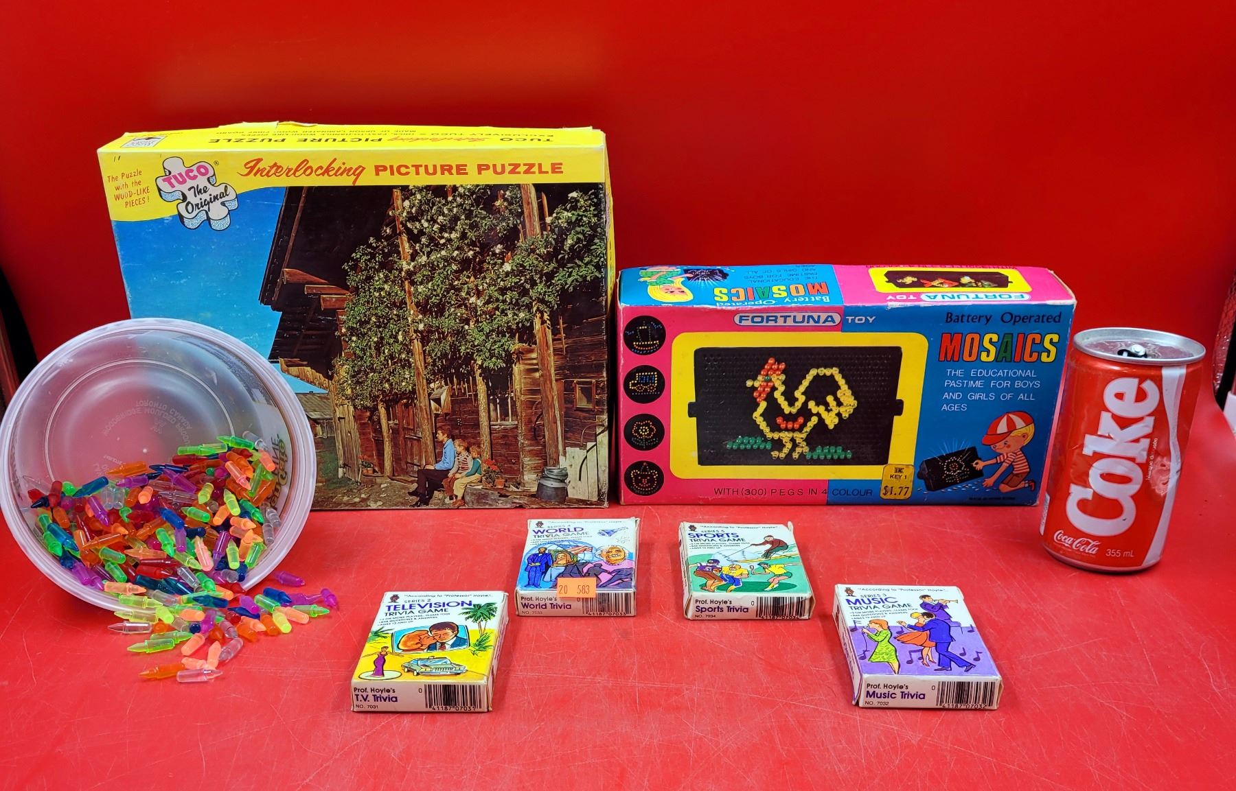 VTG Battery Operated Mosaics Toy, Interlocking Puzzle, & Trivia Card Games