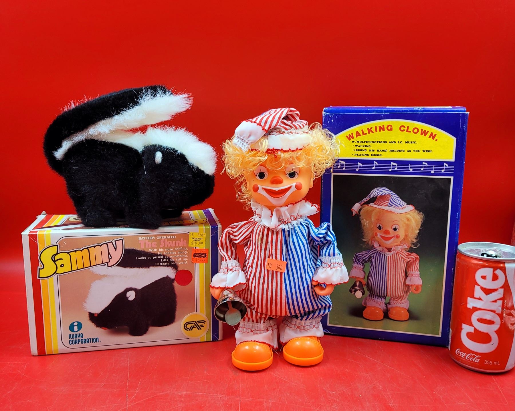 VTG Battery Operated Sammy the Skunk & Walking Clown