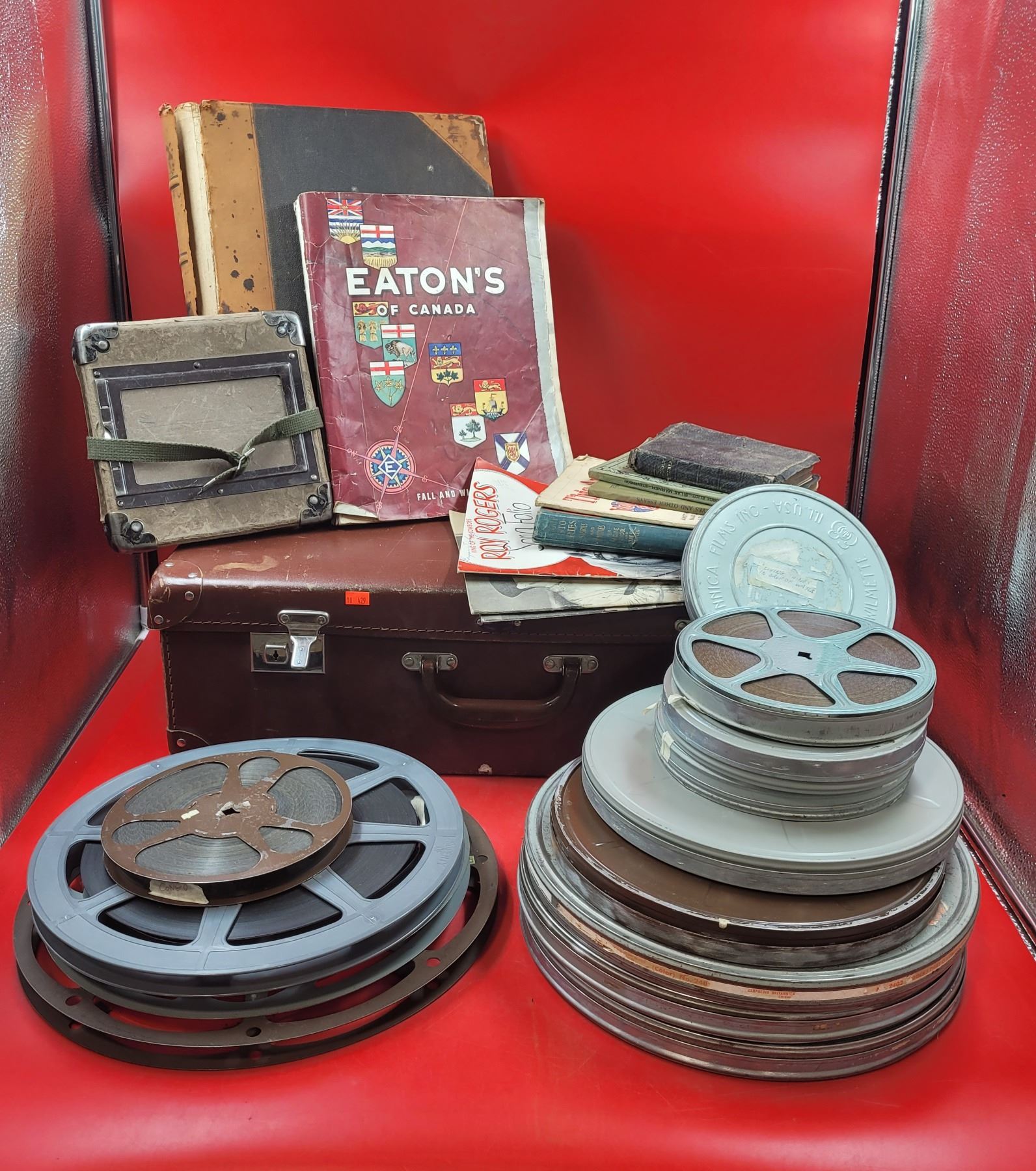 VTG Books, Picture Frame, Case & Reel To Reel Tape