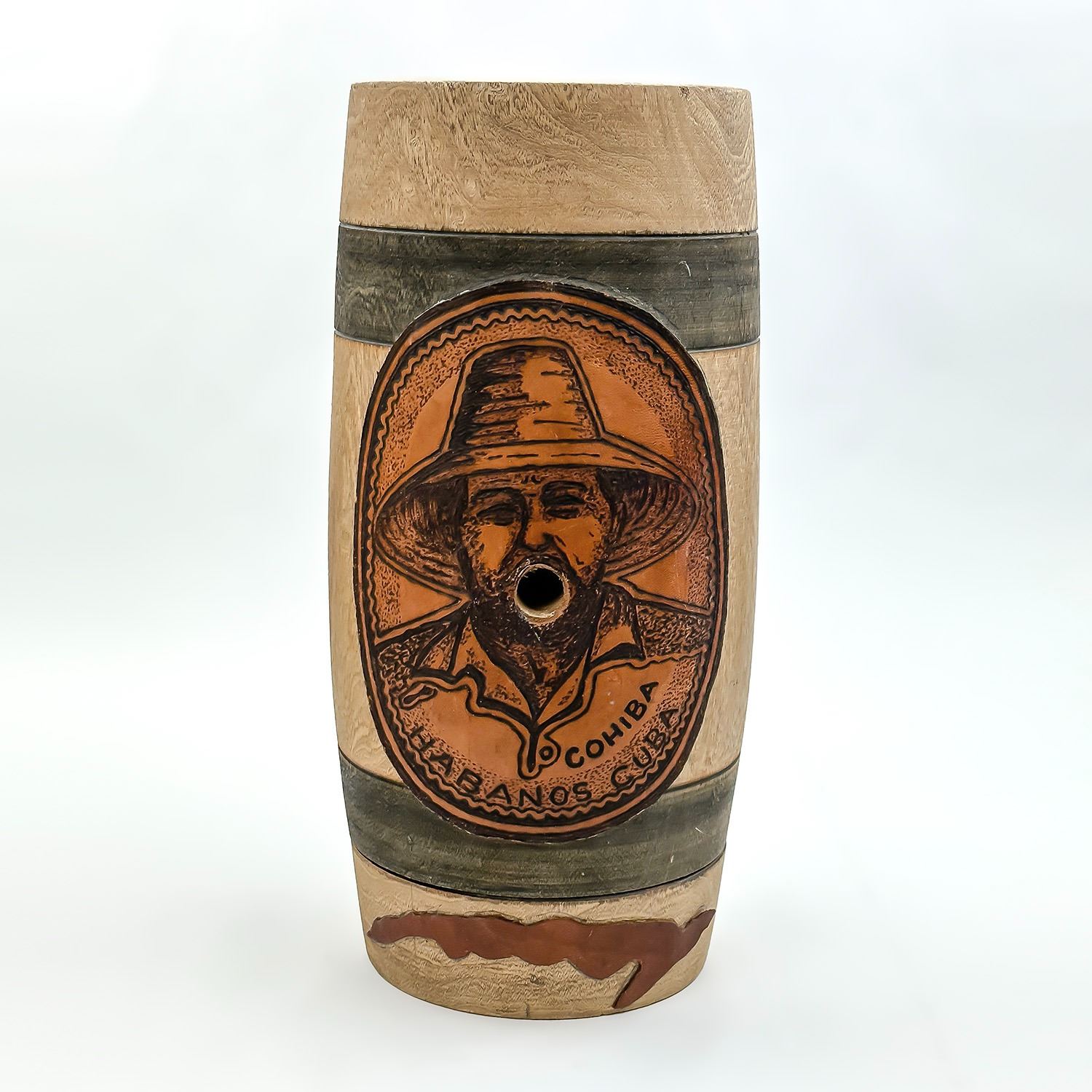 #8976 - HAND CRAFTED WOODEN BARREL FROM HABANOS, CUBA. GOOD BAR DECORE - JUST NEEDS COHIBA CIGAR IN HIS MOUTH. WOOD BURNING/LEATHER TOOLED DESIGN ON WHAT APPEARS TO BE LEATHER AFFIXED TO THE BARREL. ORIGINAL PURPOSE AND AGE UNKNOWN. BARREL IS HOLLOW***ITEM(S) LOCATED IN LETHBRIDGE ALBERTA. FREE TRANSPORT TO EDMONTON OFFICE AVAILABLE FOR THIS AUCTION. WORLDWIDE SHIPPING IS AVAILABLE FOR ALL ITEMS