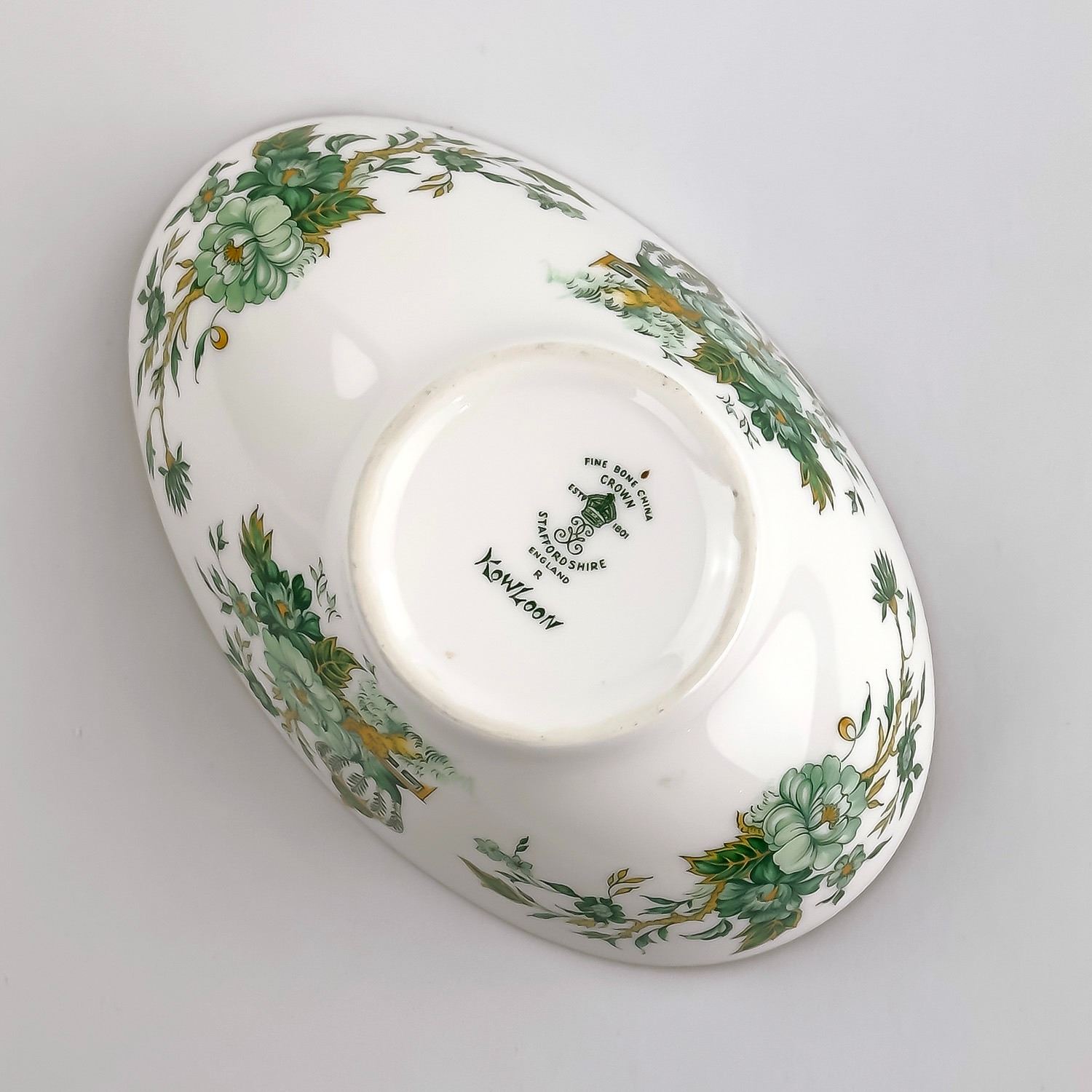 #8150 - VINTAGE CROWN STAFFORDSHIRE, ENGLAND - LARGE EGG SHAPED AVOCADO DISH. FINE BONE CHINA - ENGLAND - KOWLOON PATTERN - KITCHEN, KITCHENWARE. MEASURES: 5.75” (14.5 CM) LONG BY 3.75” (9.5 CM) WIDE AND SITS 2” (5 CM) TALL