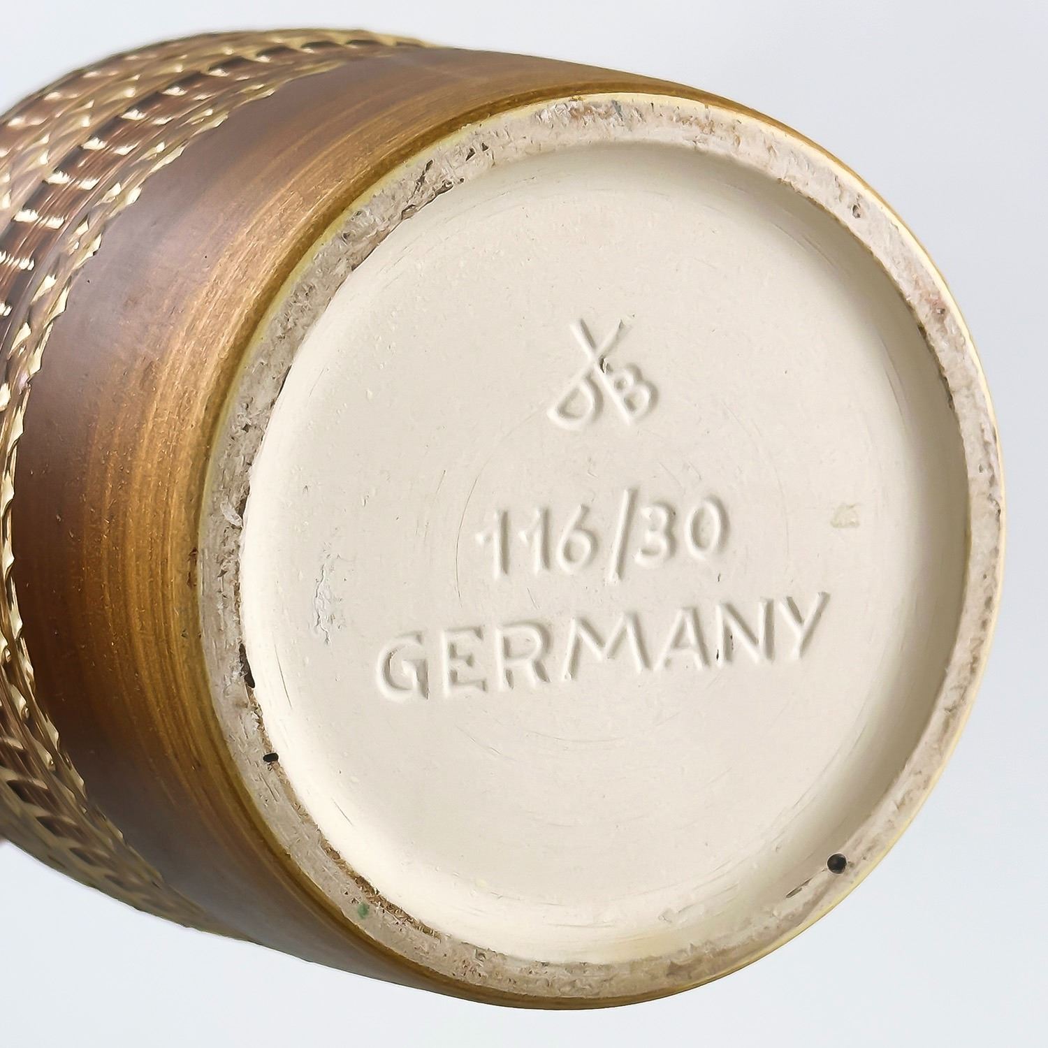 #8020 - VINTAGE D&B DUMLER & BREIDEN 116/30 GERMAN POTTERY VASE SCULPTURE. HOME OR OFFICE DECOR FLOWER VASE. MEASURES: 11.75” (30 CM) TALL BY ROUGHLY 5” (12.75 CM) WIDEST DIAMETER