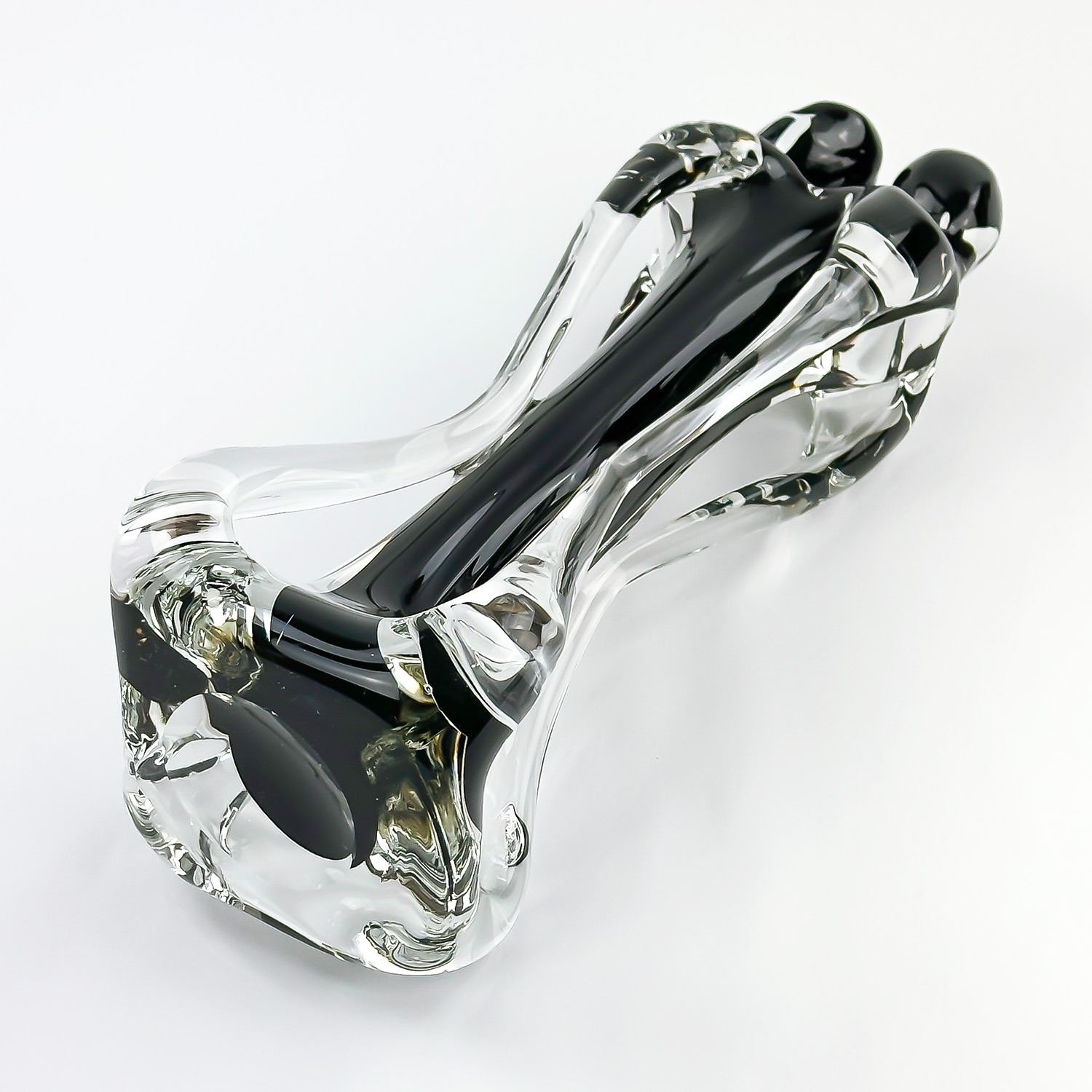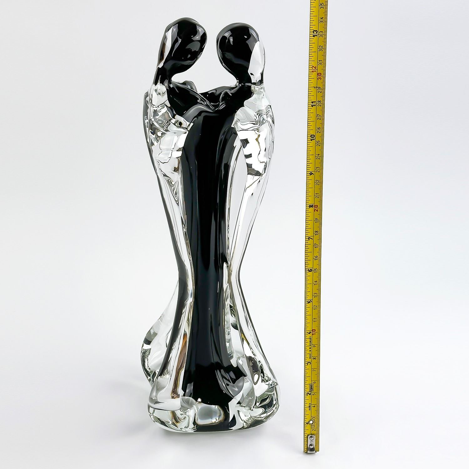 #8008 - VINTAGE MURANO OR MURANO STYLE BLOWN ART GLASS VASE. COUPLE EMBRACING - LOVING COUPLE - HAND CRAFTED HOME DECOR ART ABSTRACT SCULPTURE FIGURES. FLOWER VASE OPENING AT TOP - BETWEEN THE WOMAN AND MANS HEADS. NO CRACKS, CHIPS OR REPAIRS. MEASURES: 13.25” (33.5 CM) TALL BY ROUGHLY 4.25” (11 CM) SQUARISH BASE