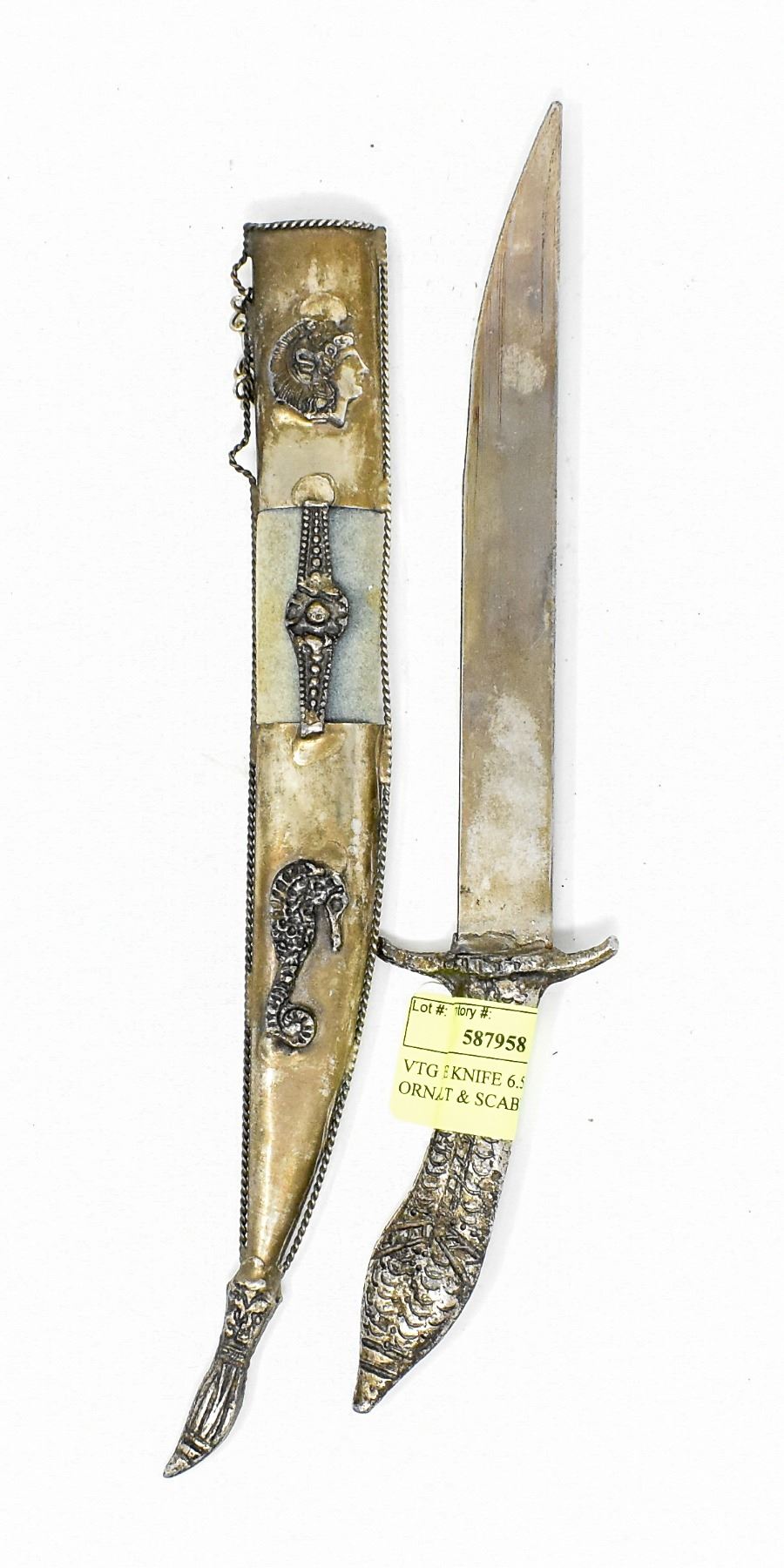 VTG ESTATE KNIFE 6.5" BLADE ORNATE HILT & SCABBAR