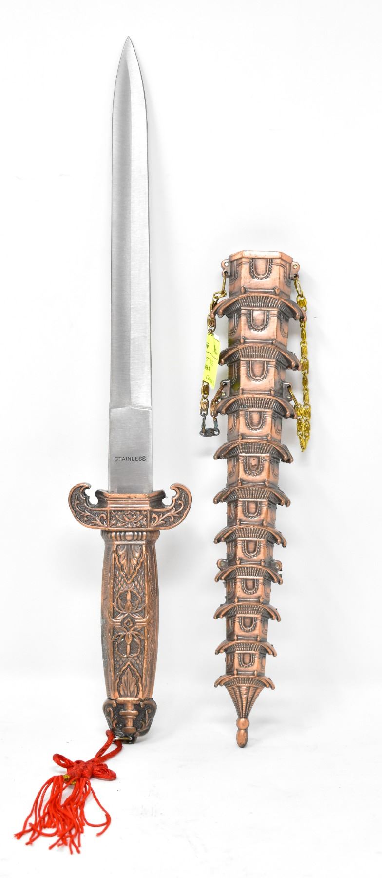 VTG ESTATE KNIFE 9.5" BLADE ORNATE HILT & SCABBAR