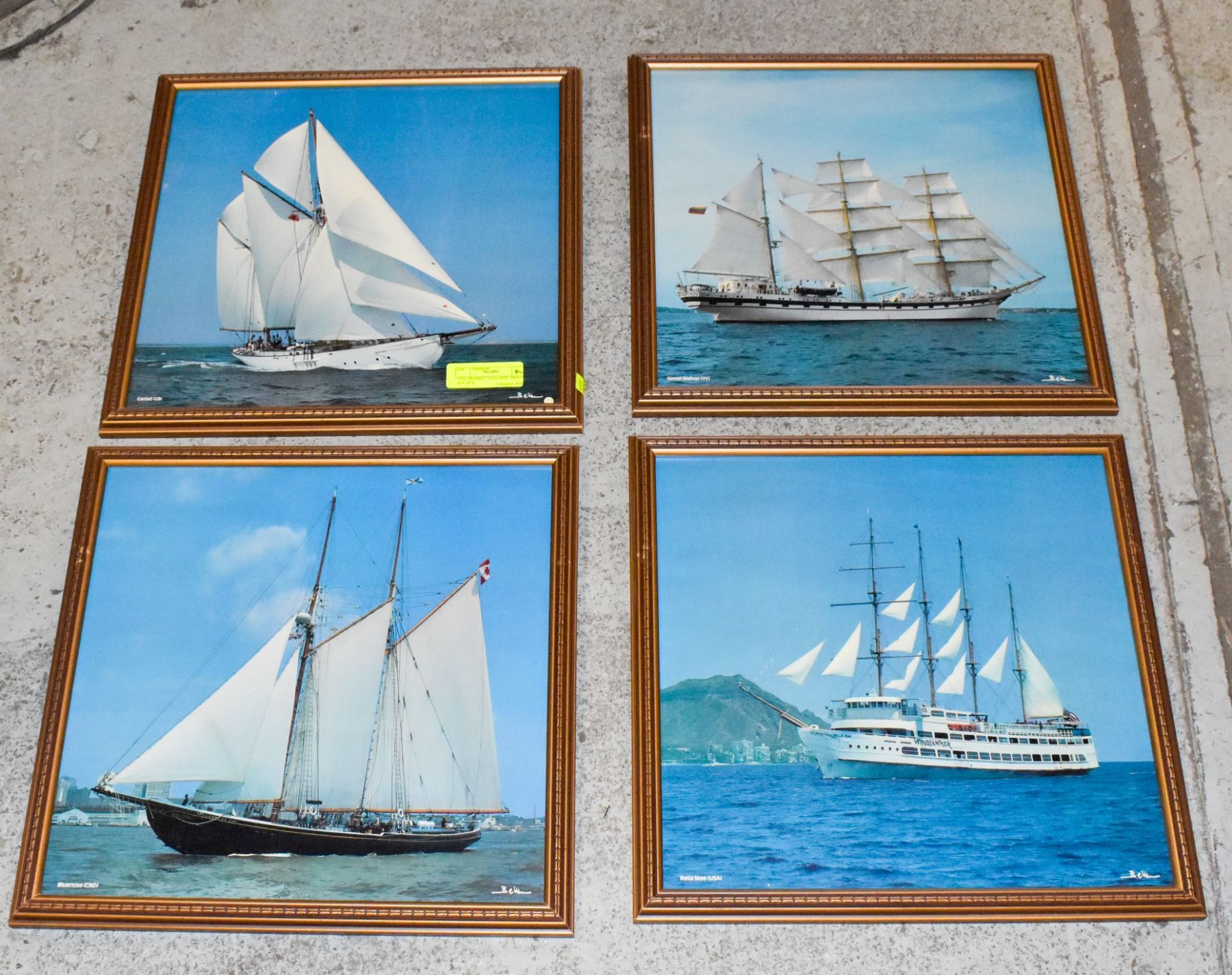 VTG. FRAMED "TALL SHIP" PRINTS- SET OF 4