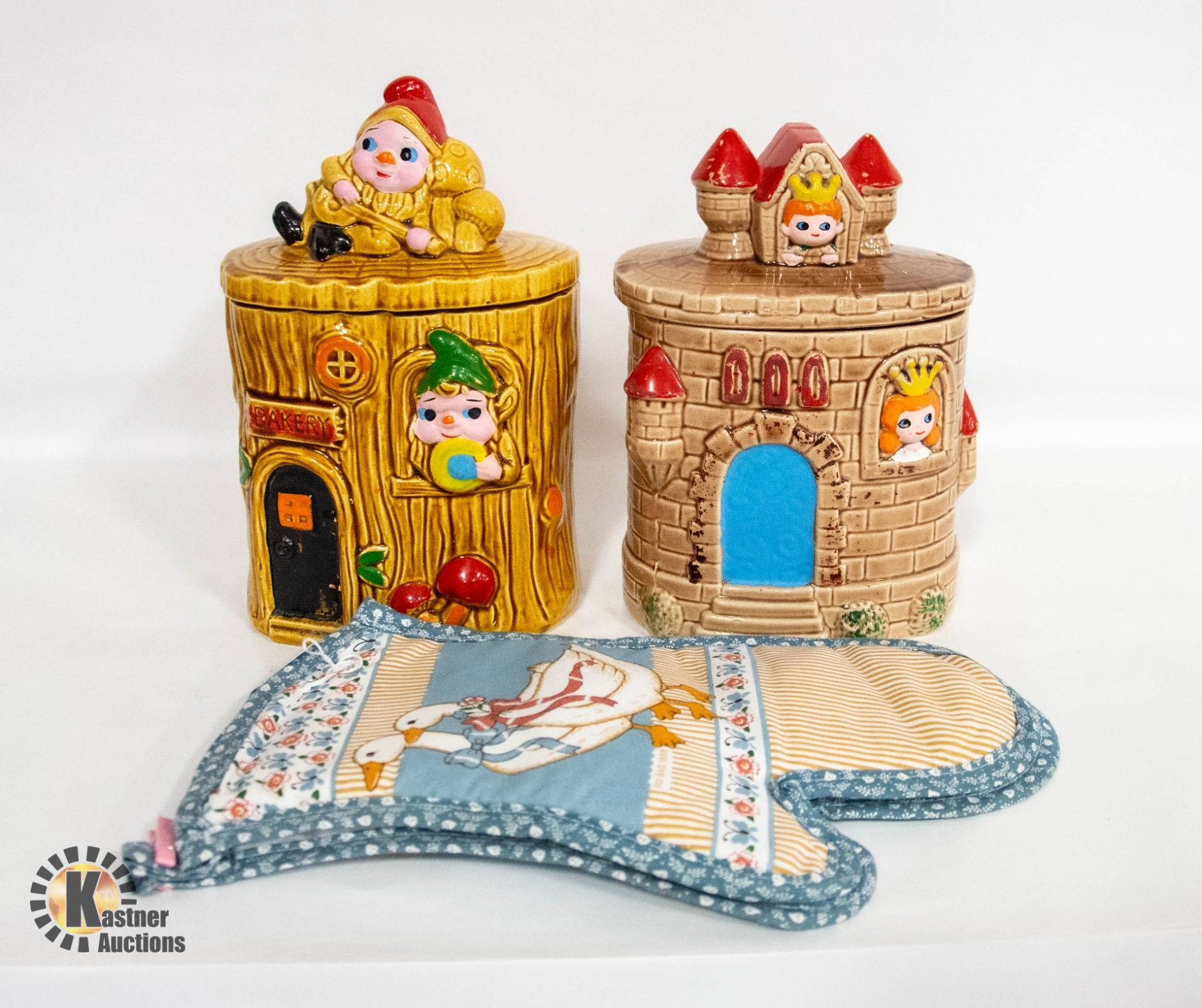 VTG GEESE OVEN MITTS, 1960S COOKIE JARS
