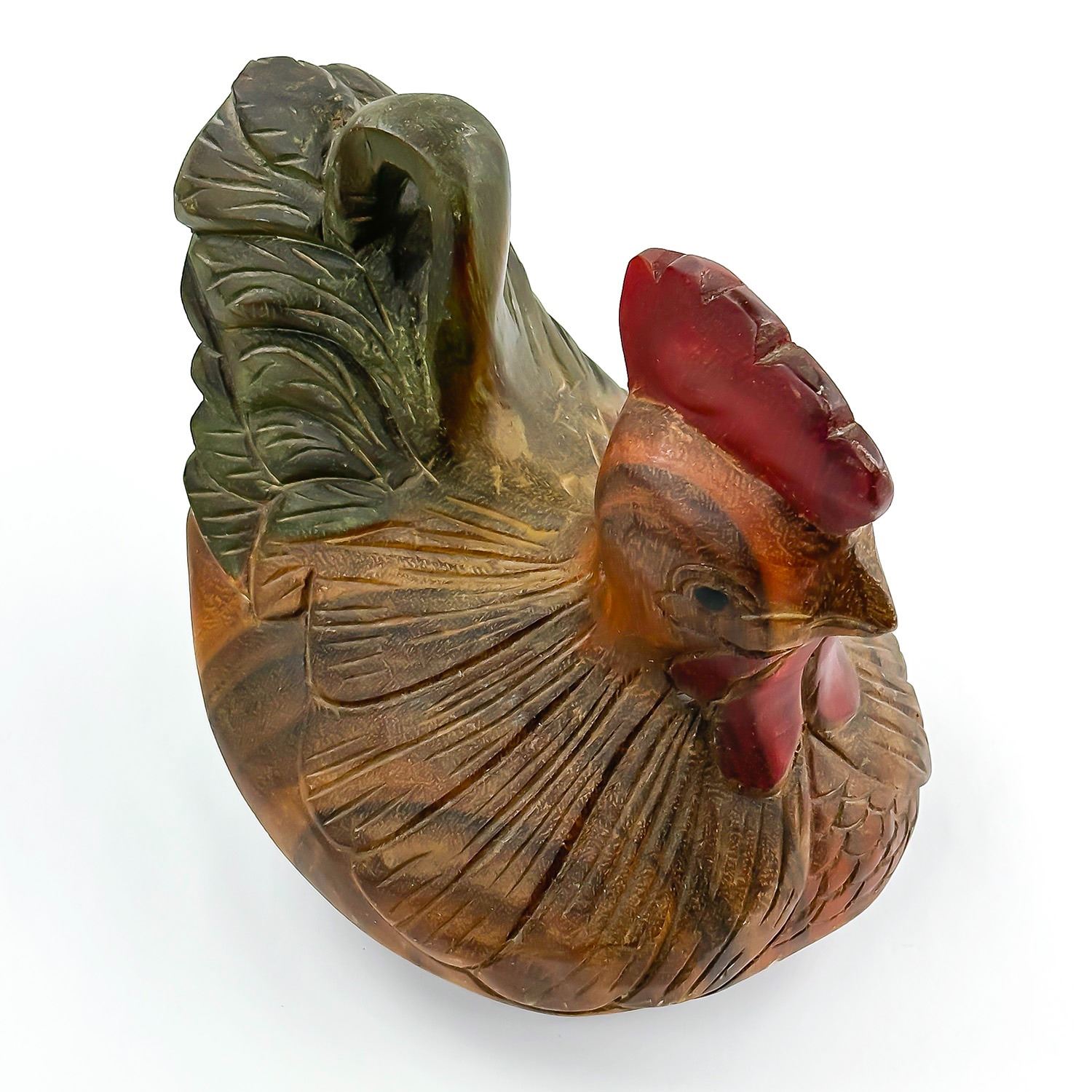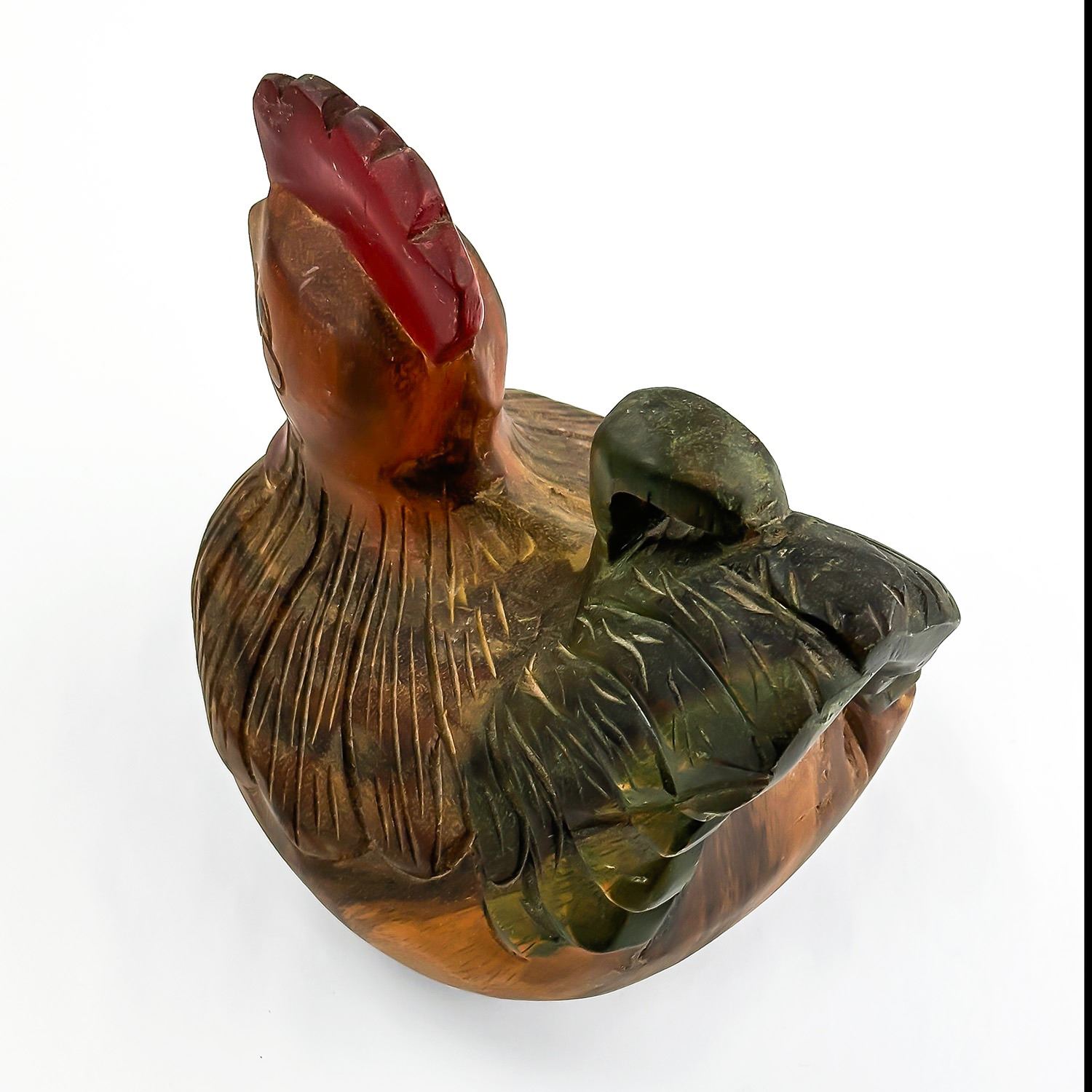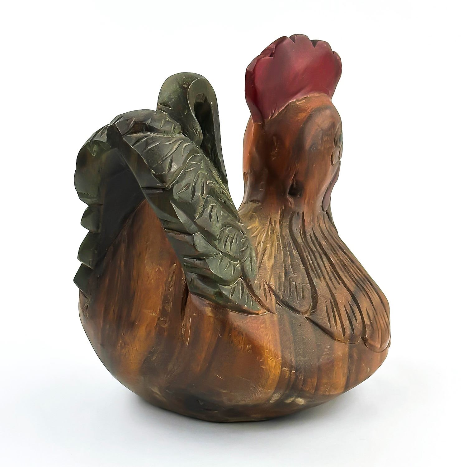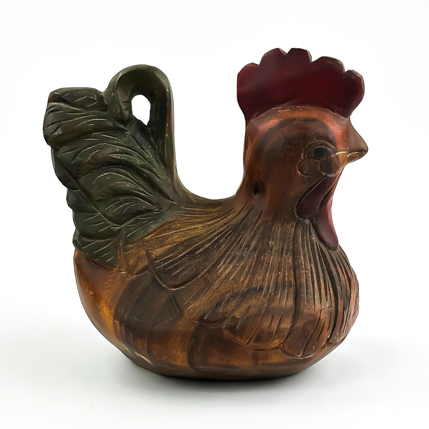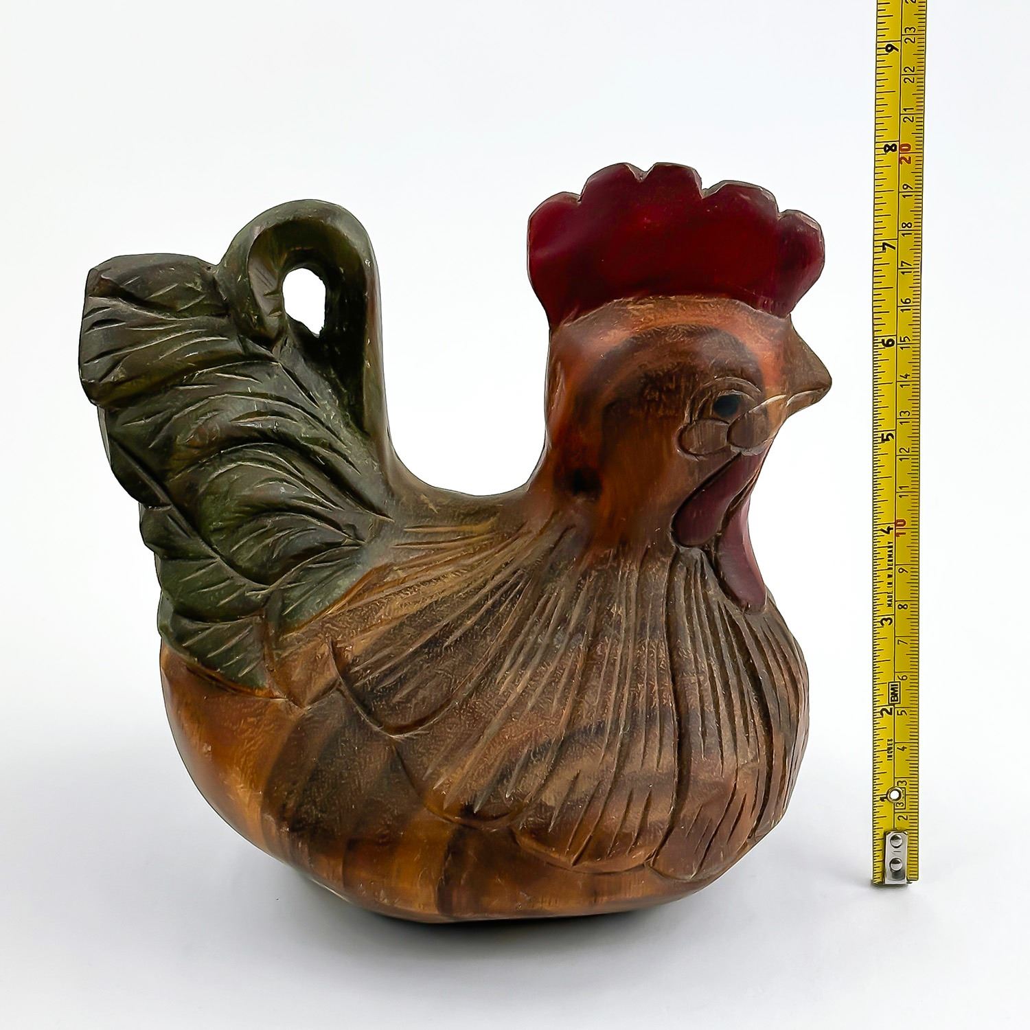 #8032 - VINTAGE CHICKEN HEN ROOSTER WOOD CARVING. HAND CARVED & PAINTED WOODEN FOLK ART CHICKEN FIGURINE STATUE. HOME OR OFFICE DECOR - WEIGHS 1293 GRAMS (2.85 POUNDS). MEASURES: 8” (20 CM) LONG BY 6”(15 CM) WIDE AND SITS 8” (20 CM) TALL