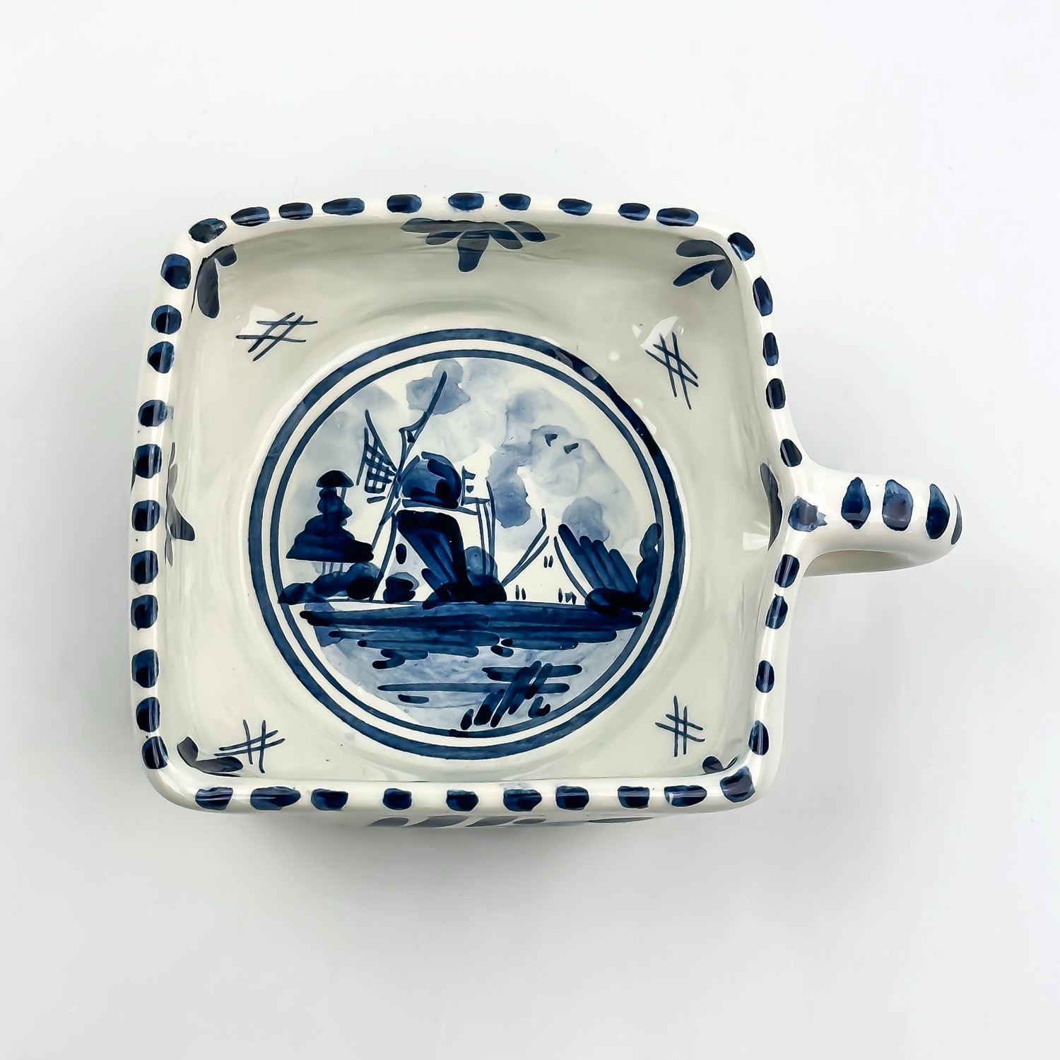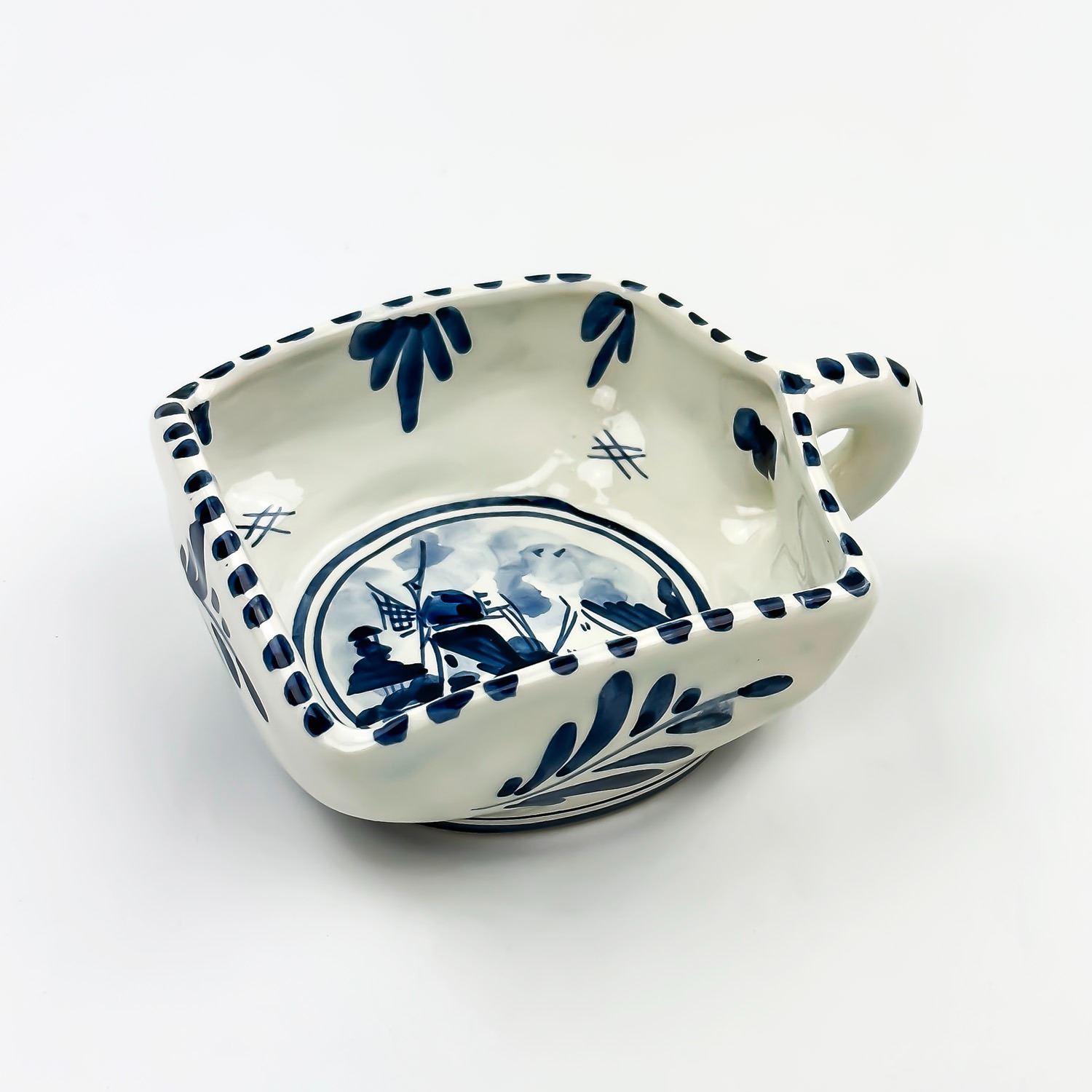 #9029 - VINTAGE HANDLED DELFT BLUE DISH OR ASHTRAY. MEASURES: 4.75” (12 CM) WIDE - INCLUDES HANDLE BY 3.5” (9 CM) DEEP AND SITS 1.75” (4.5 CM) HIGH***ITEM(S) LOCATED IN LETHBRIDGE ALBERTA. FREE TRANSPORT TO EDMONTON OFFICE AVAILABLE FOR THIS AUCTION. WORLDWIDE SHIPPING IS AVAILABLE FOR ALL ITEMS