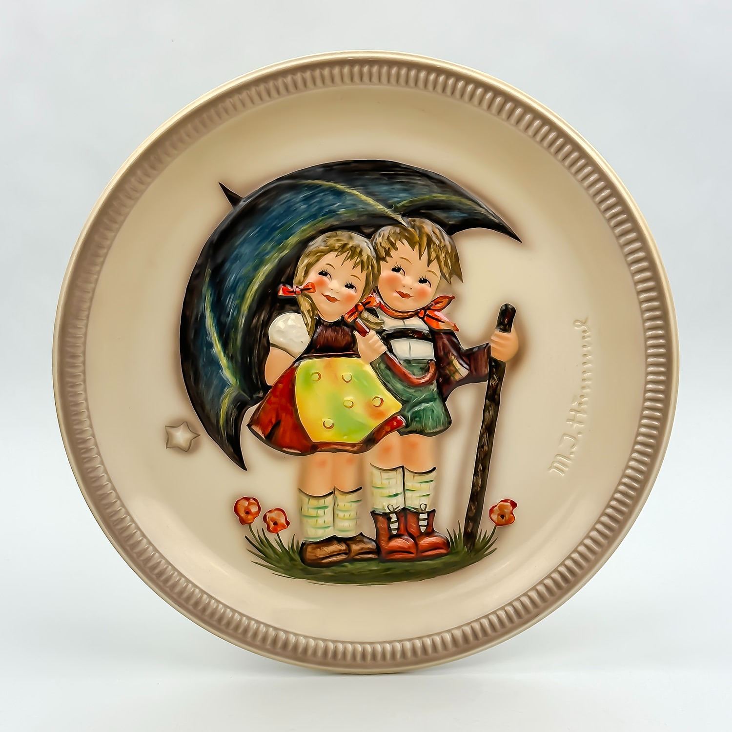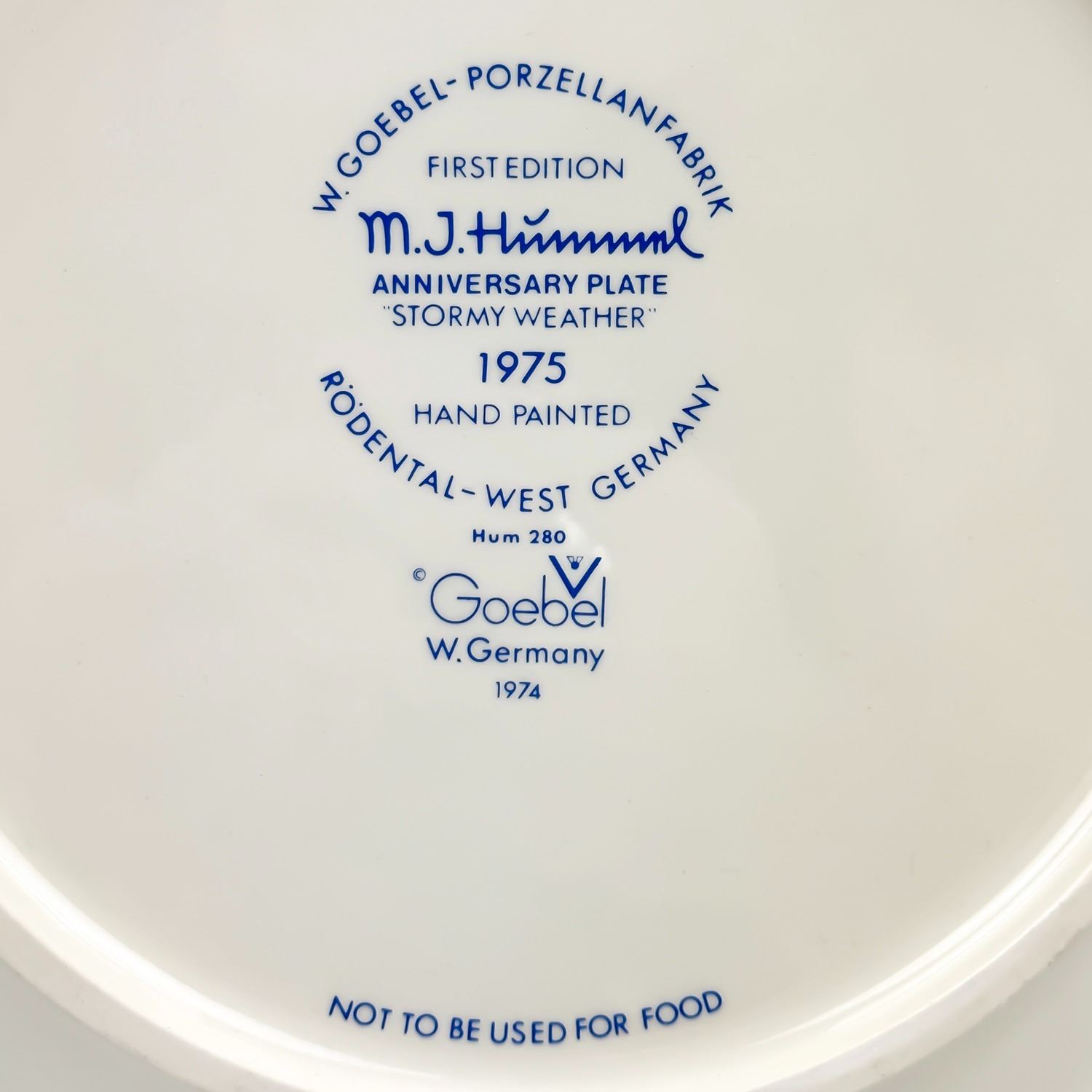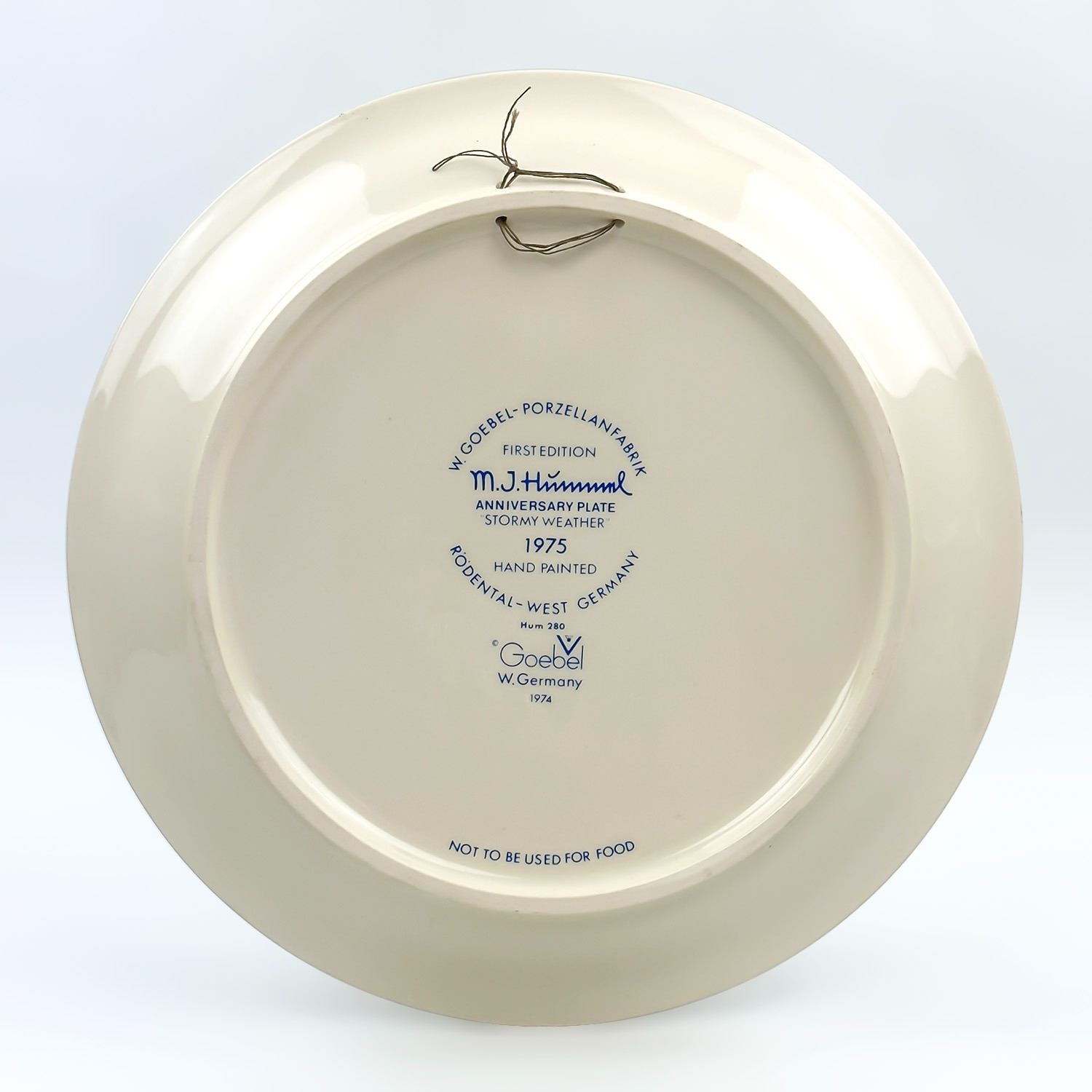 #8060 - PLATE IS TITLED “STORMY WEATHER” AND IS THE FIRST EDITION OF HUMMEL’S ANNIVERSARY PLATES - 1975 HAND PAINTED PORCELAIN. MEASURES: 10.25” (26 CM) DIAMETER***ITEM(S) LOCATED IN LETHBRIDGE ALBERTA. FREE TRANSPORT TO EDMONTON OFFICE AVAILABLE FOR THIS AUCTION. WORLDWIDE SHIPPING IS AVAILABLE FOR ALL ITEMS