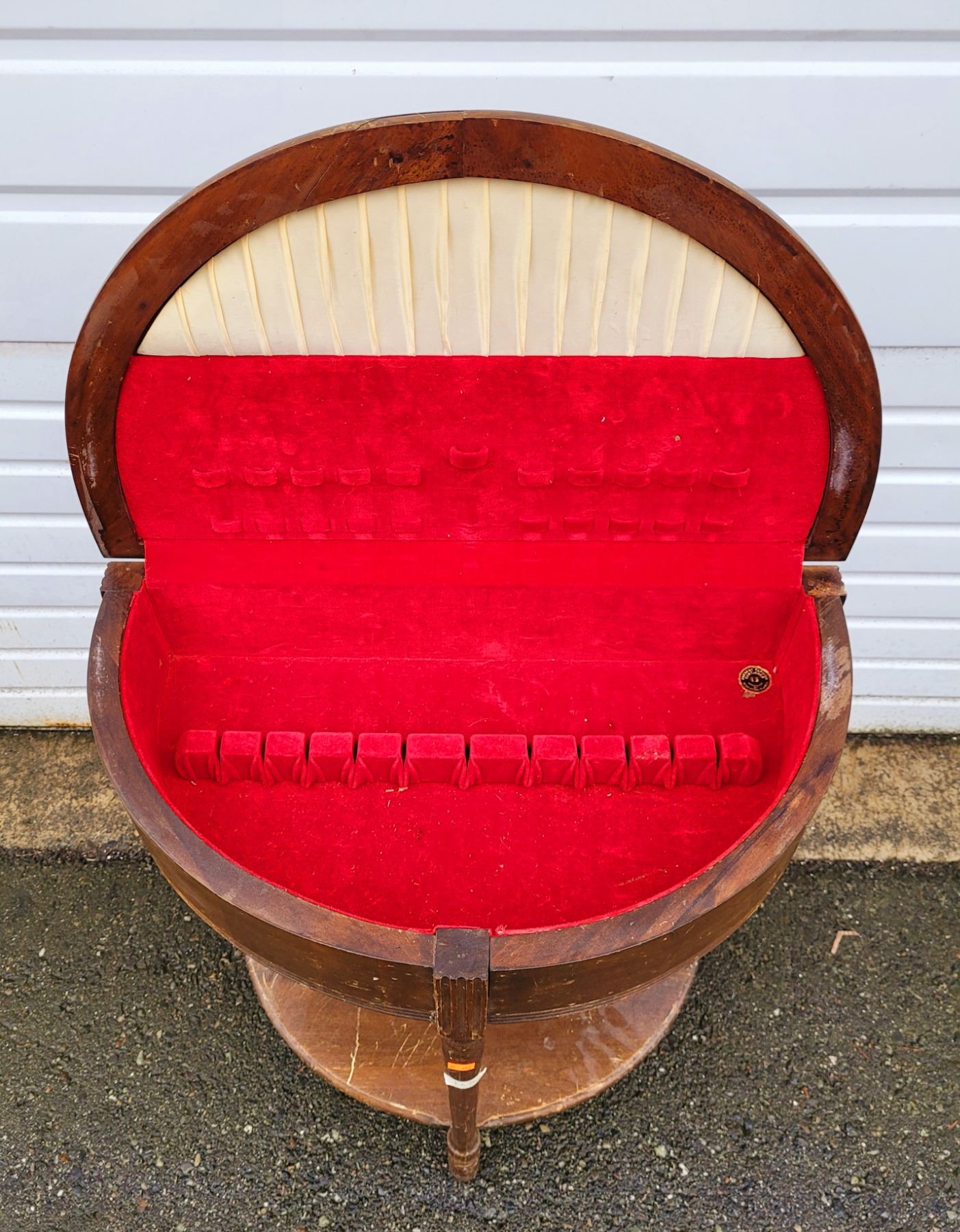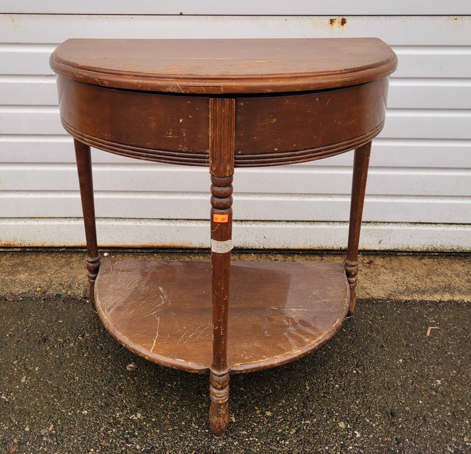 VTG Half Moon Side Table w/ Anti-Tarnish Silverware Storage