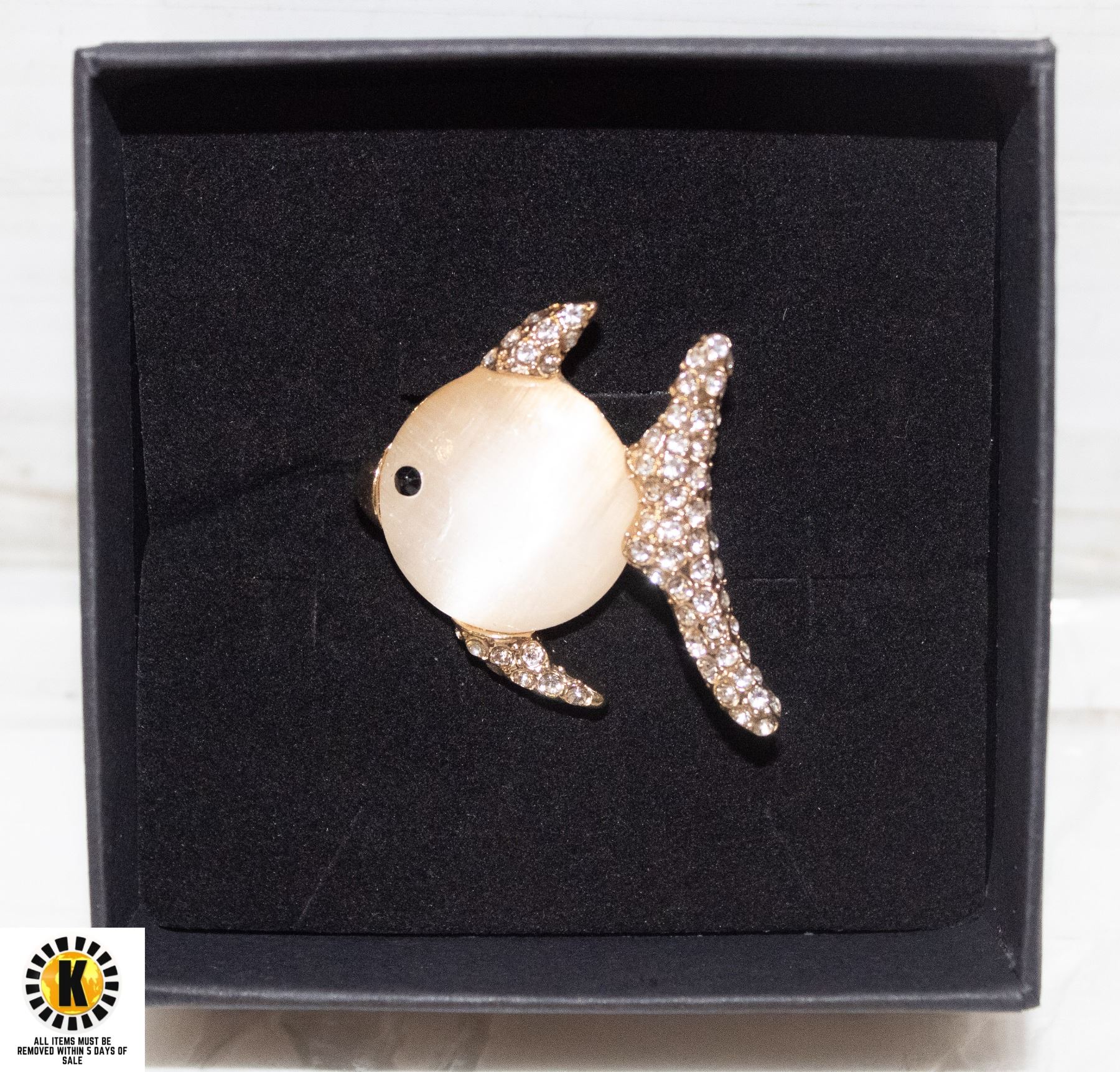 VTG. JELLY BELLY RHINESTONE FISH BROOCH