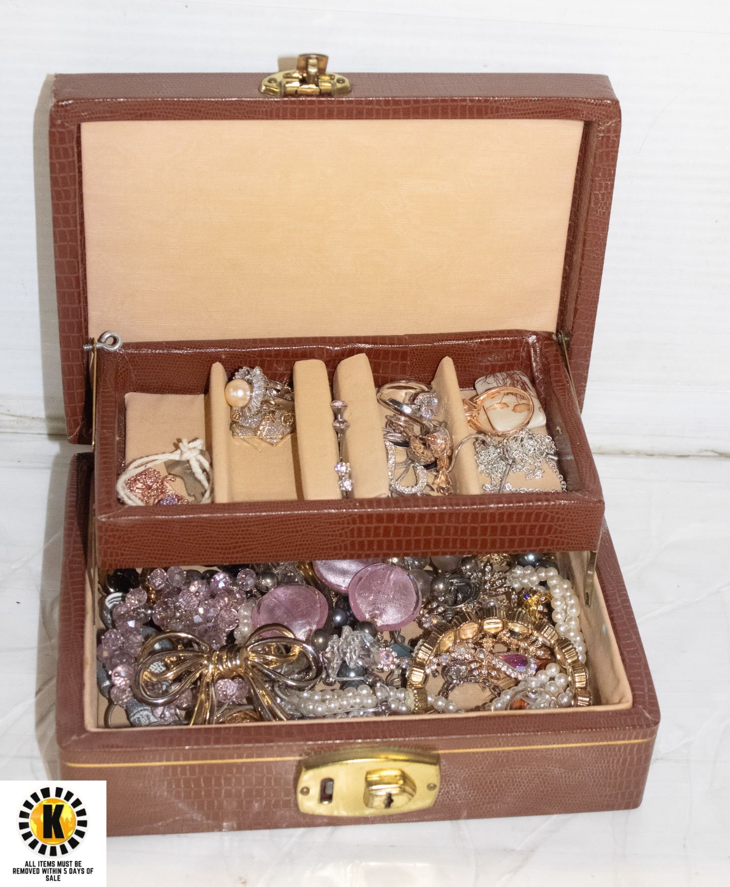 VTG. JEWELRY BOX W KEY & ESTATE JEWELRY
