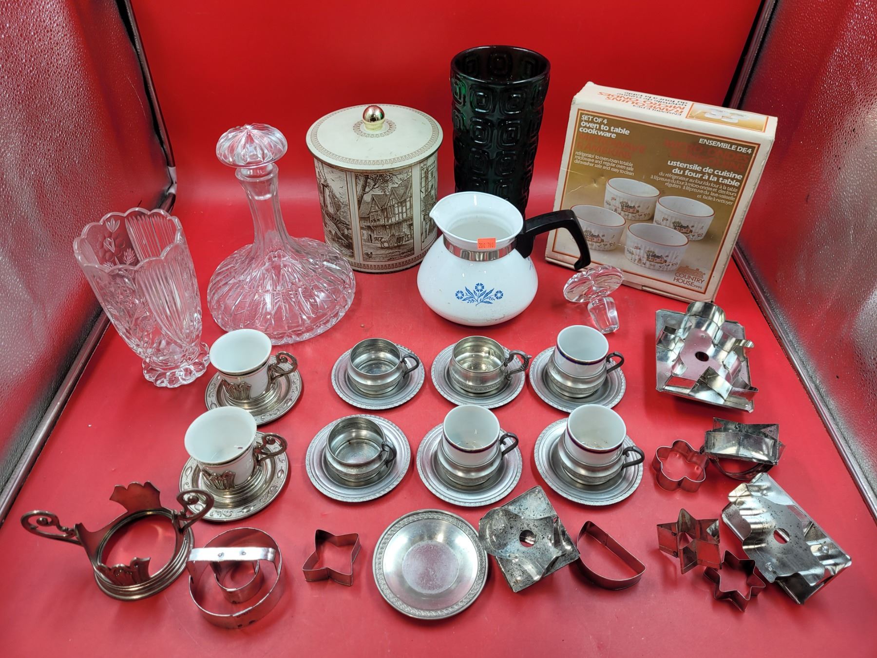 VTG Kitchen Lot w/ Cookie Cutters, Teacups & Saucers, Microwave Ramekins, & More