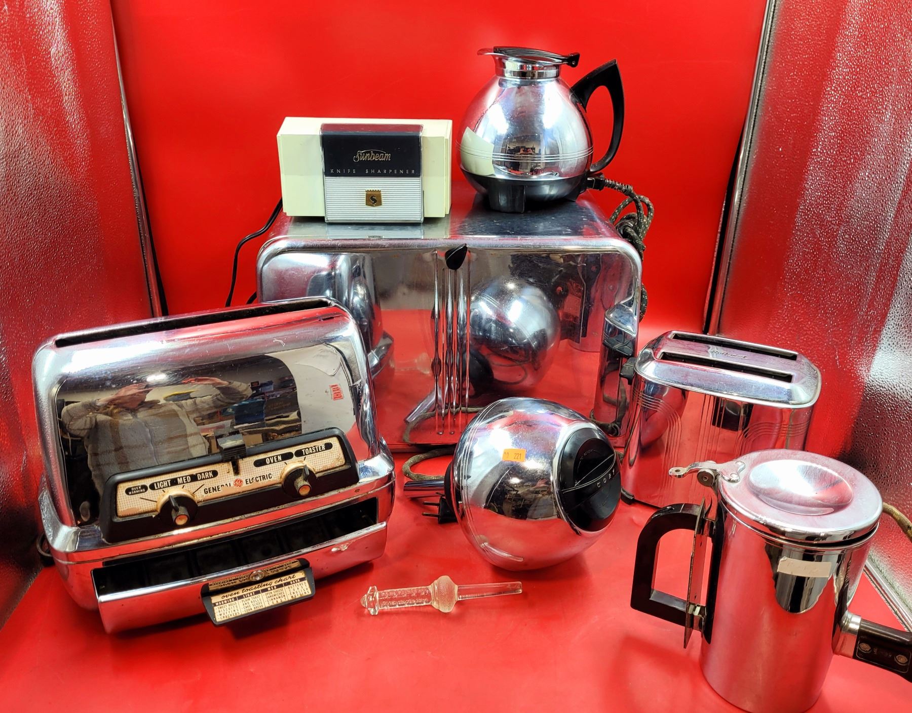 VTG Kitchen Supplies (Sunbeam Knife Sharpener, General Electric Toaster Oven, Metal Breadbox, etc.)