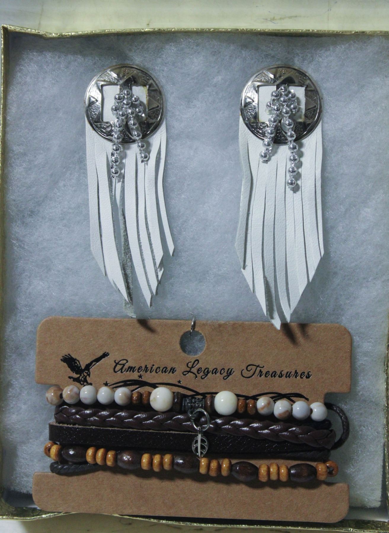 - EARRINGS ARE PIERCED, GENUINE LEATHER, VTG. 1980'S, BRACELET IS NEW FROM "AMERICAN LEGACY TREASURES", IN A GIFT BOX