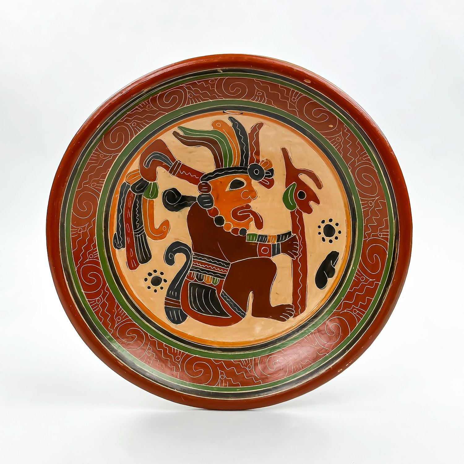 #8348 - MAYAN CLAY POTTERY ROUND BOTTOM BOWL OR DISH - AGE UNKNOWN. MEASURES: 10.5” (26.5 CM) DIAMETER AND SITS 1.75” (4.5 CM) HIGH