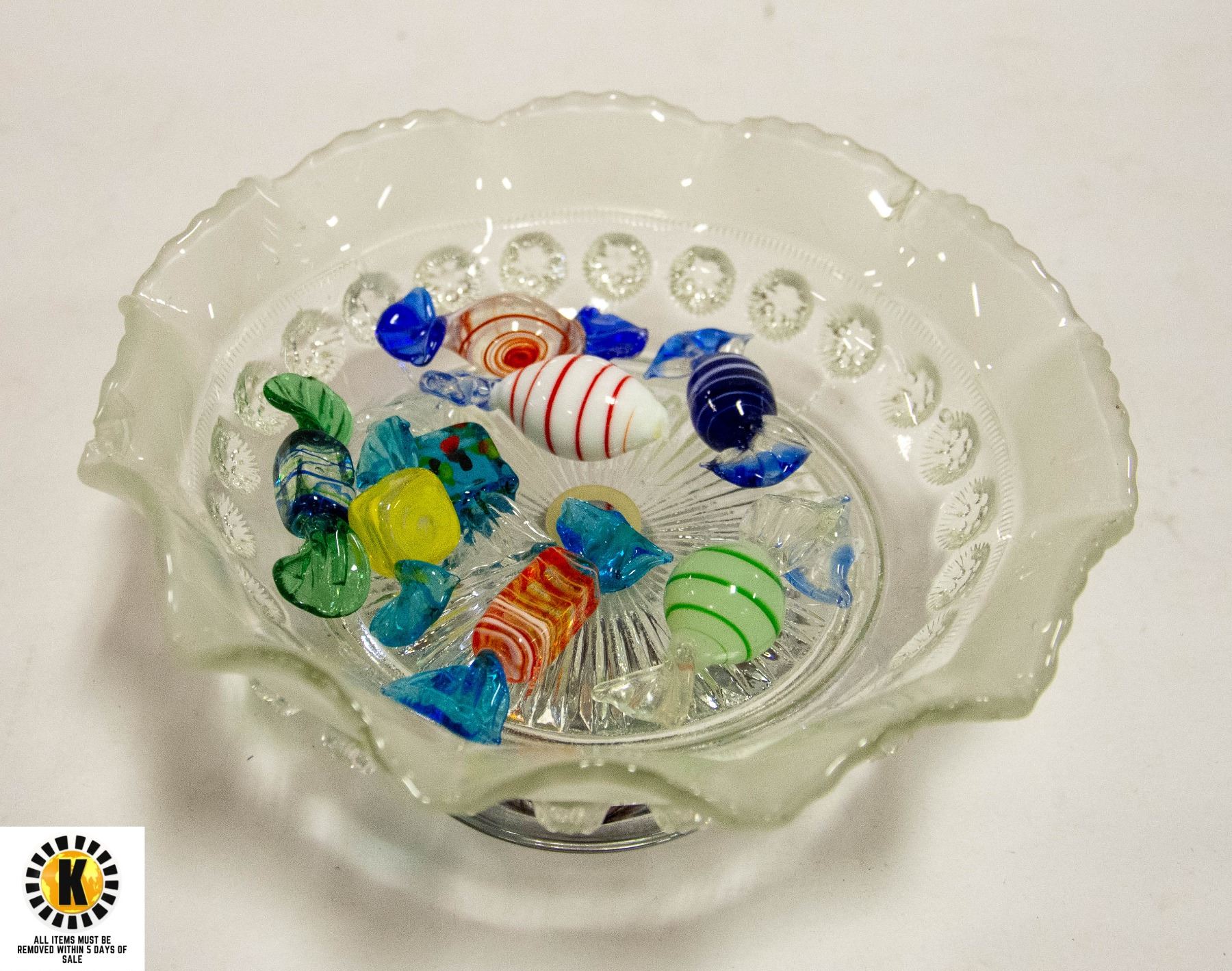BLOWN GLASS CANDY DISH-HAS SMALL CRACK **ALL ITEMS MUST BE REMOVED BY 5PM SATURDAY, NOVEMBER 4TH 2023. ALL REMAINING ITEMS WILL BE SUBJECT TO A $6.00 PER DAY STORAGE CHARGE. ANY ITEMS REMAINING AFTER MONDAY, NOVEMBER 18TH, 2023 WILL BE CONSIDERED FORFEITED. NO REFUNDS WILL BE ISSUED FOR FORFEITED ITEMS. TO SCHEDULE A PICK UP APPOINTMENT CLICK HERE