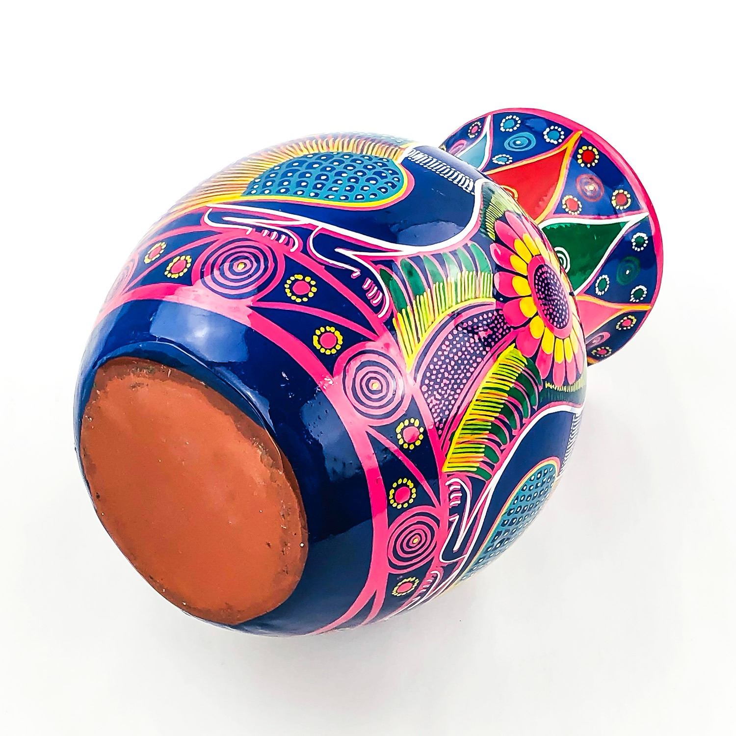#9379 - VINTAGE HAND CRAFTED AND PAINTED TERRACOTTA VASE - BIRDS AND FLOWER THEME. UNSIGNED - AGE AND MAKER UNKNOWN - READS MEXICO IN THE DESIGN ON THE NECK, MEASURES 7.5” (19 CM) TALL, 5.5” (14 CM) WIDEST DIAMETER, 3.5” (9 CM) DIAMETER OPENING***ITEM(S) LOCATED IN LETHBRIDGE ALBERTA. ALL ITEMS IN THIS AUCTION QUALIFY FOR OUR FREE TRANSPORT TO EDMONTON SERVICE. WORLDWIDE SHIPPING AVAILABLE