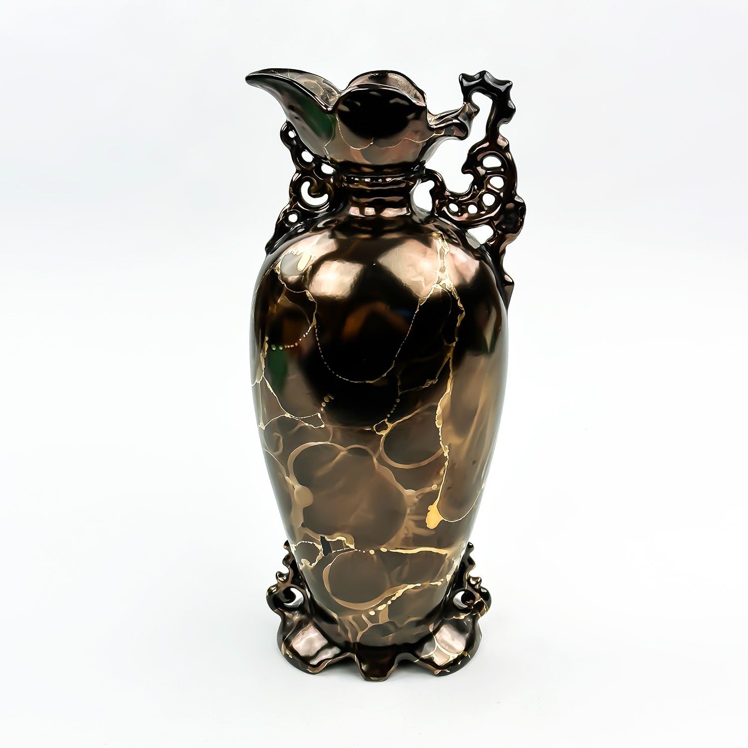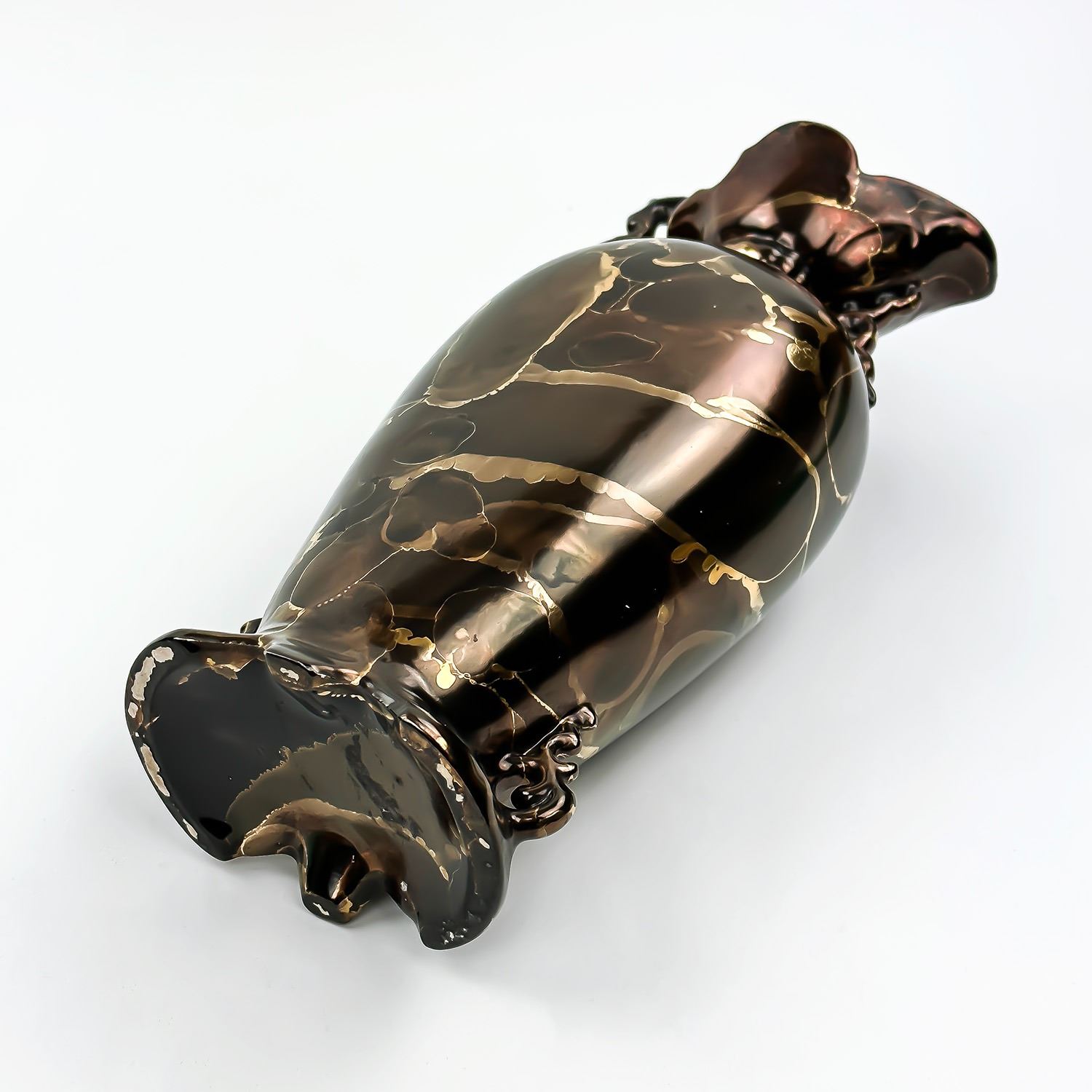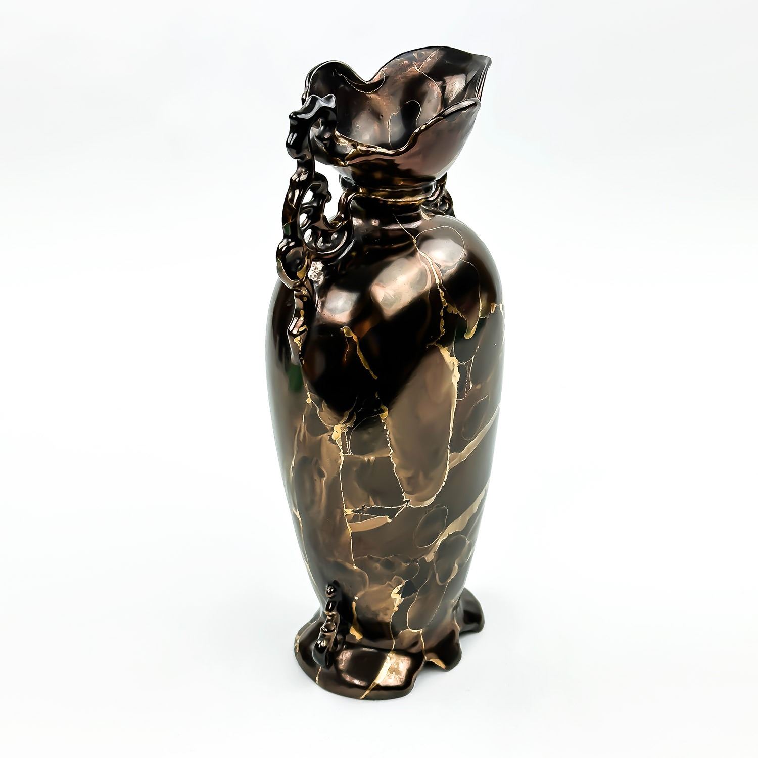 #8398 - VINTAGE HAND CRAFTED CERAMIC VASE - GOLD AND BROWN MOTTLED COLORS - MARKED ALBERTA’S ON THE BOTTOM - FOR ALBERTA’S MOLD. MEASURES: 11” (28 CM) HIGH BY 4.75” (12 CM) WIDE AND 3.5” (9 CM) DEEP***ITEM(S) LOCATED IN LETHBRIDGE ALBERTA. FREE TRANSPORT TO EDMONTON OFFICE AVAILABLE FOR THIS AUCTION. WORLDWIDE SHIPPING IS AVAILABLE FOR ALL ITEMS