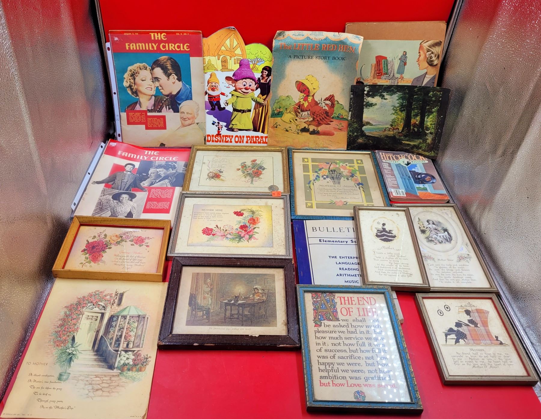 VTG Magazine & Framed Prints Lot w/ Little Red Hen Picture Book, The Family Circle Magazine, & More