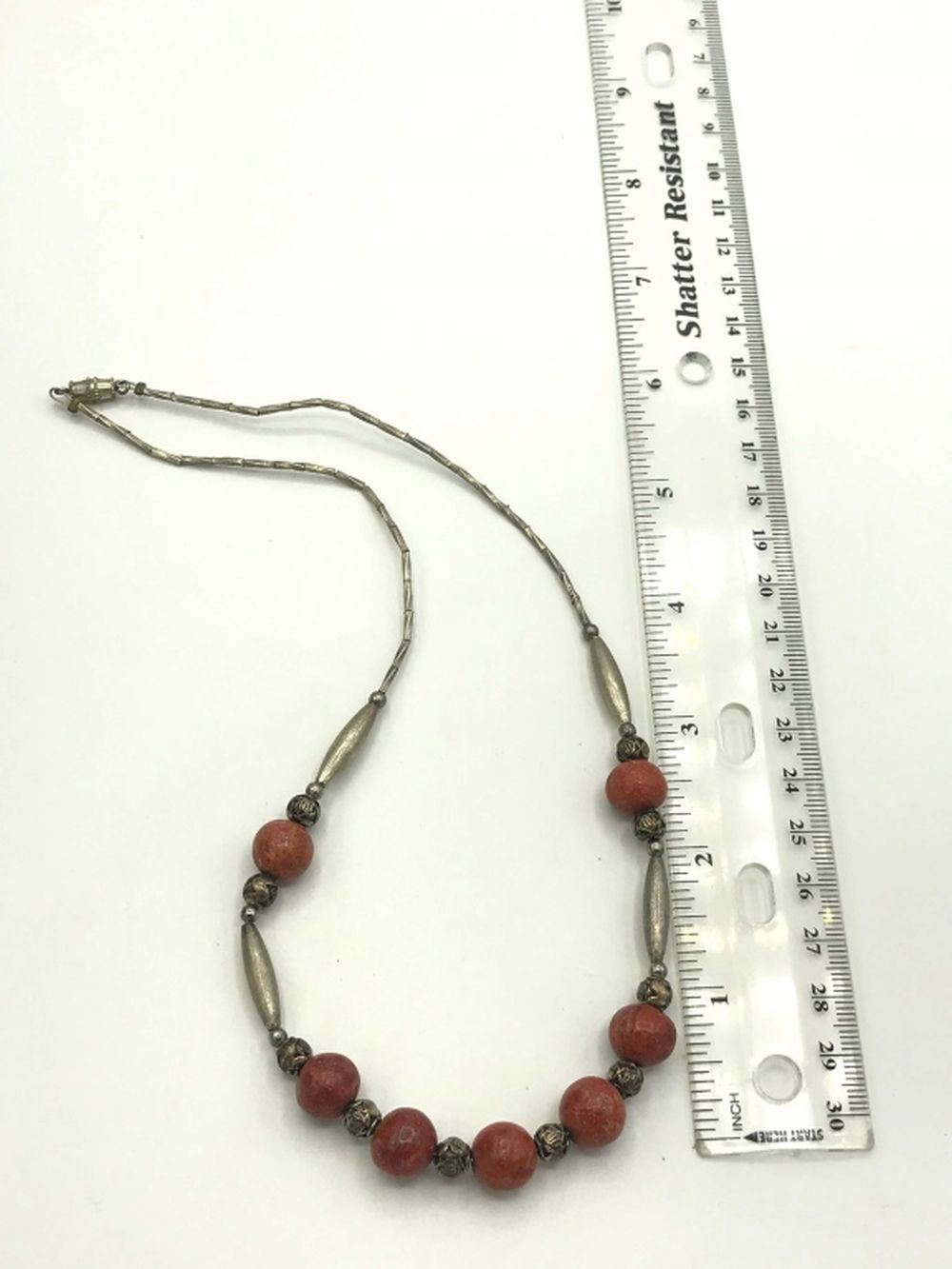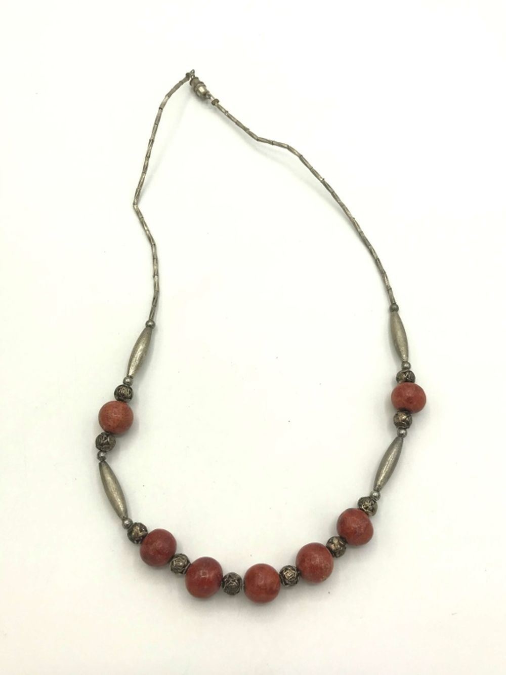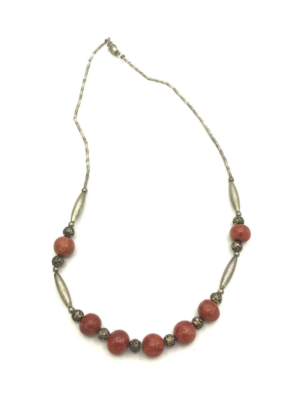 VTG. NECKLACE- LIQUID .925 TUBES, CORAL STONES