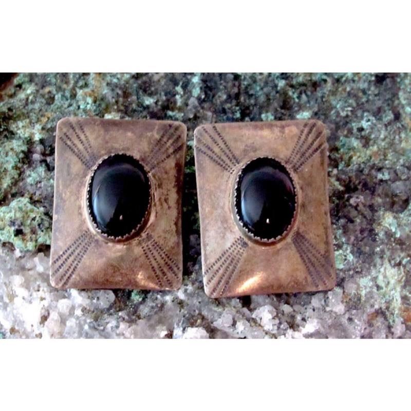VTG Navajo Onyx Clip On Earrings Sterling Silver Old Pawn Native American. 1". Good vintage condition, original patina, can be polished upon request. FREE SHIPPING ON ALL JEWELRY ORDERS WITHIN THE US!