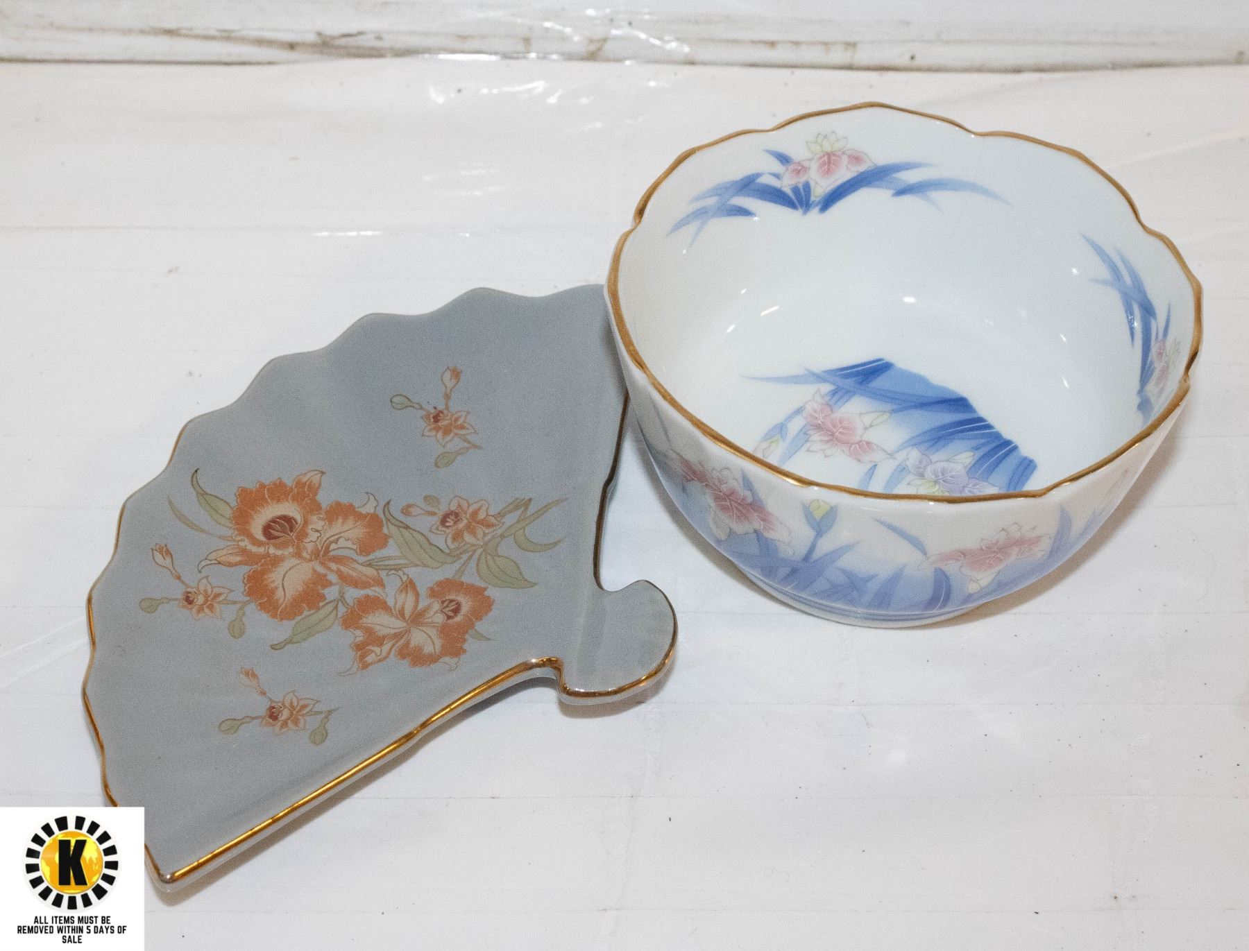 VTG. PORCELAIN JAPANESE FAN TRINKET DISH