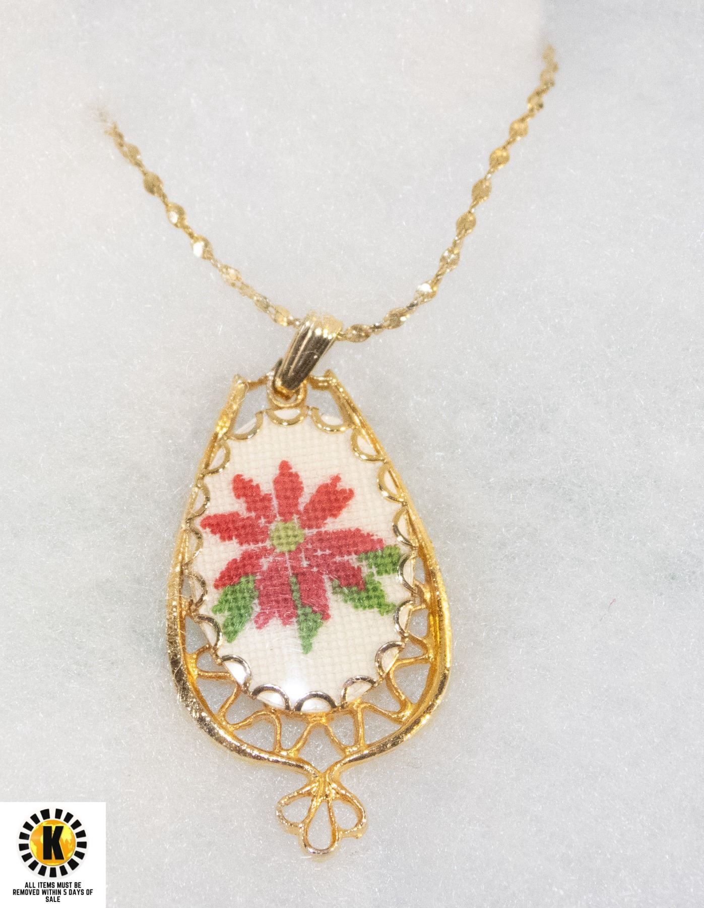 1970'S, 1-1/2" L X 1" W AT MAX, ON A 15" CHAIN WITH A 4-1/2" EXTENDER, IN A GIFT BOX