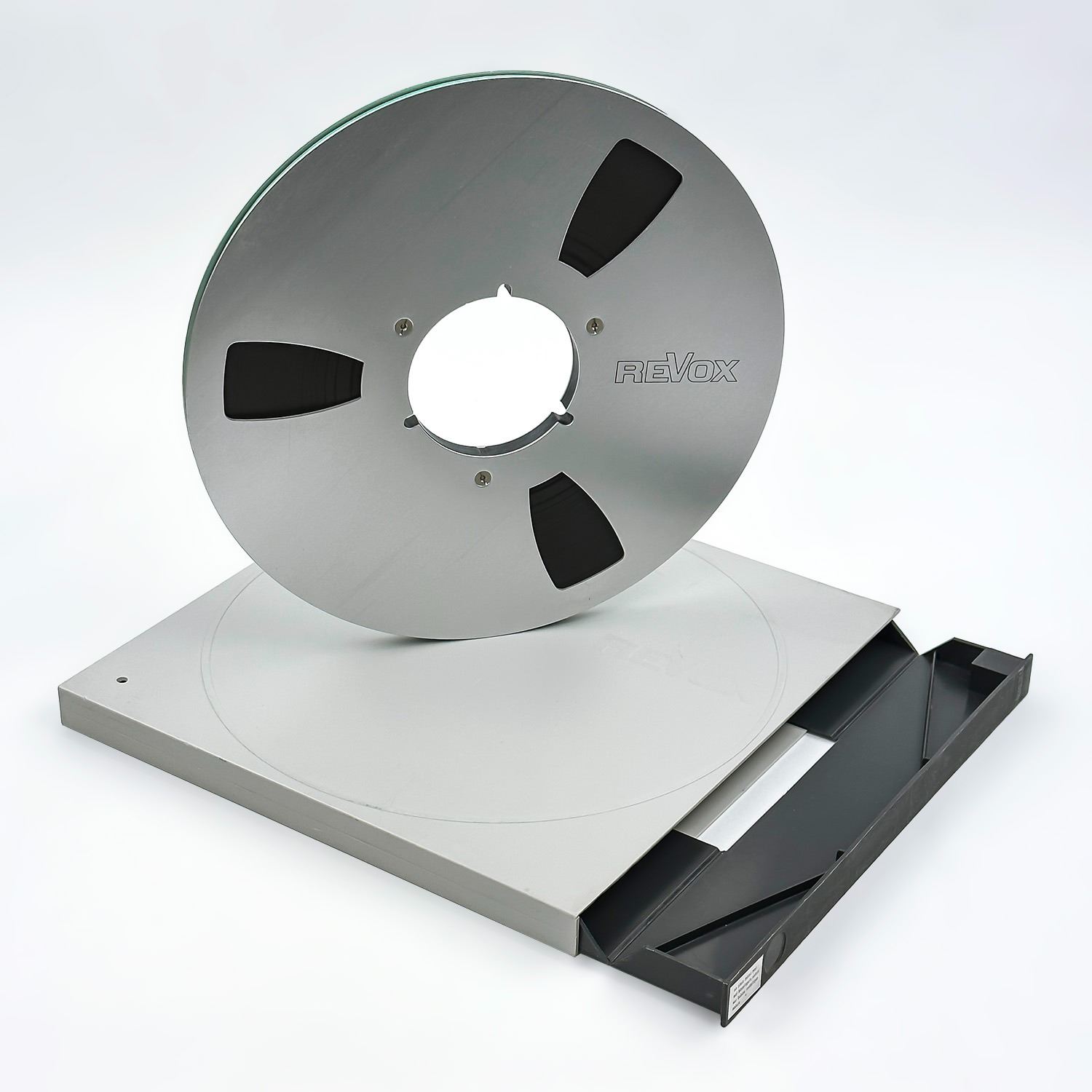 #8972 - ORIGINAL 10.5” REVOX METAL REEL IN ORIGINAL BOX WITH TAPE - FOR REEL-TO-REEL TAPE RECORDERS. BOX MEASURES: 11” (28 CM) SQUARE***ITEM(S) LOCATED IN LETHBRIDGE ALBERTA. FREE TRANSPORT TO EDMONTON OFFICE AVAILABLE FOR THIS AUCTION. WORLDWIDE SHIPPING IS AVAILABLE FOR ALL ITEMS