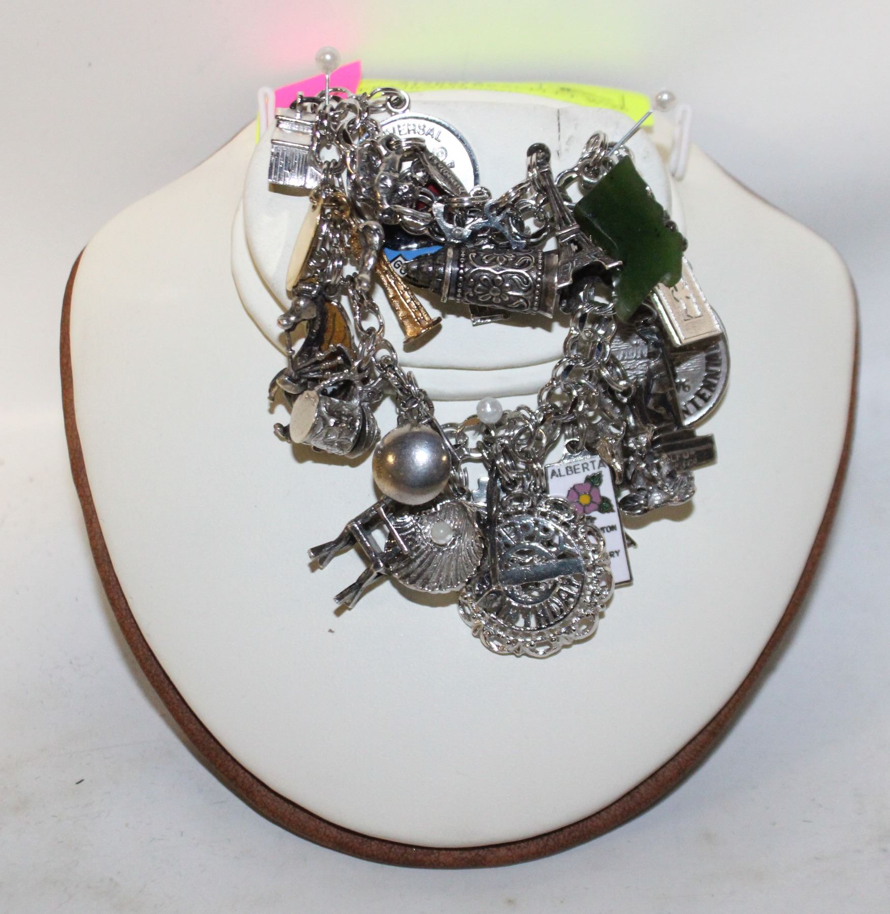 VTG SILVER CHARM BRACELET W/26 CHARMS - 56 GRAMS