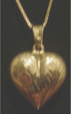 .925 STERLING MARKED. 18" CHAIN. HEART MEASURES 3/4 X 3/4" AND 3/8 DEPTH.