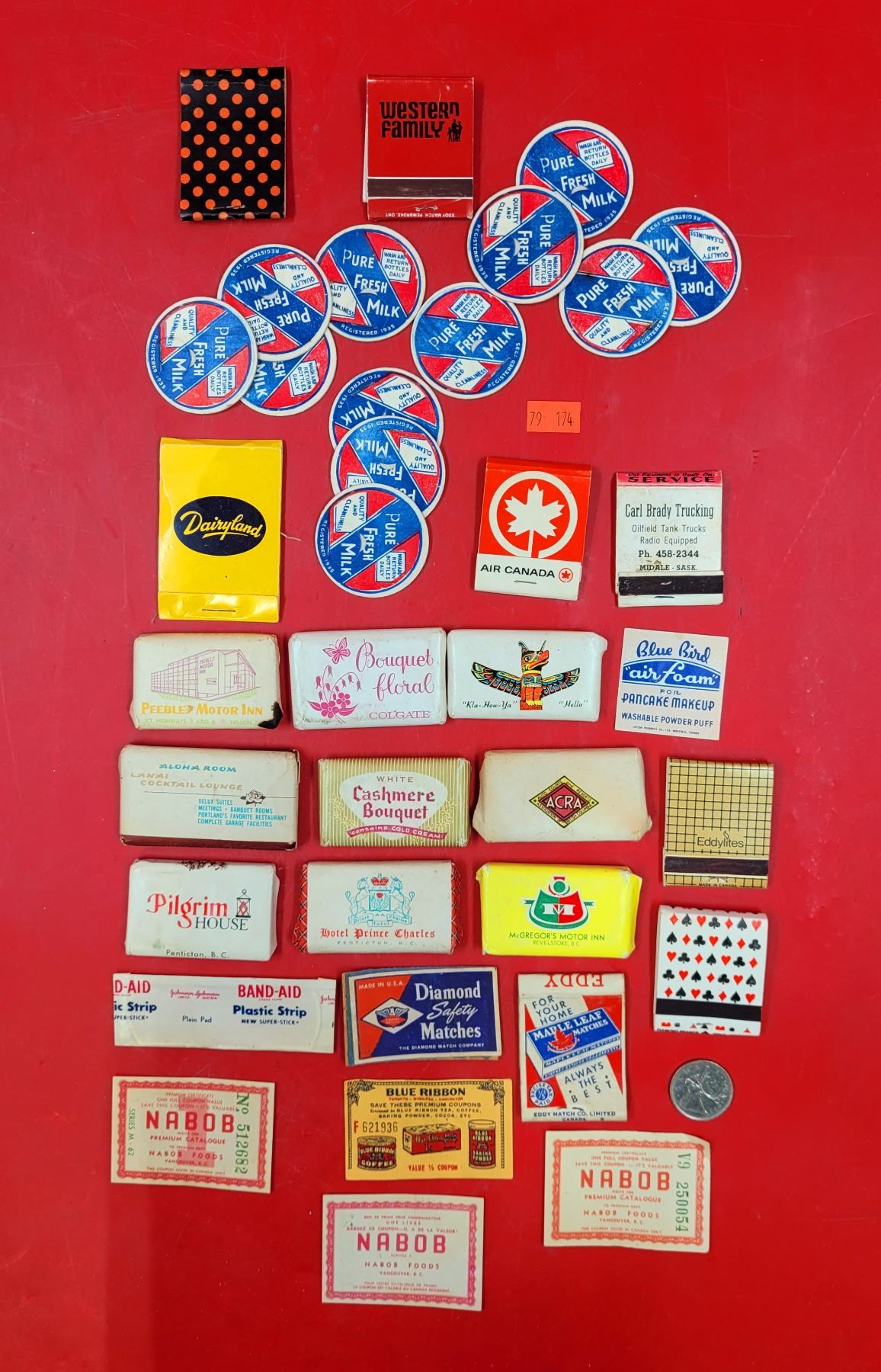 VTG Small Collectibles Lot w/ Matchbooks, Milk Caps, Nabob Coupons, & More