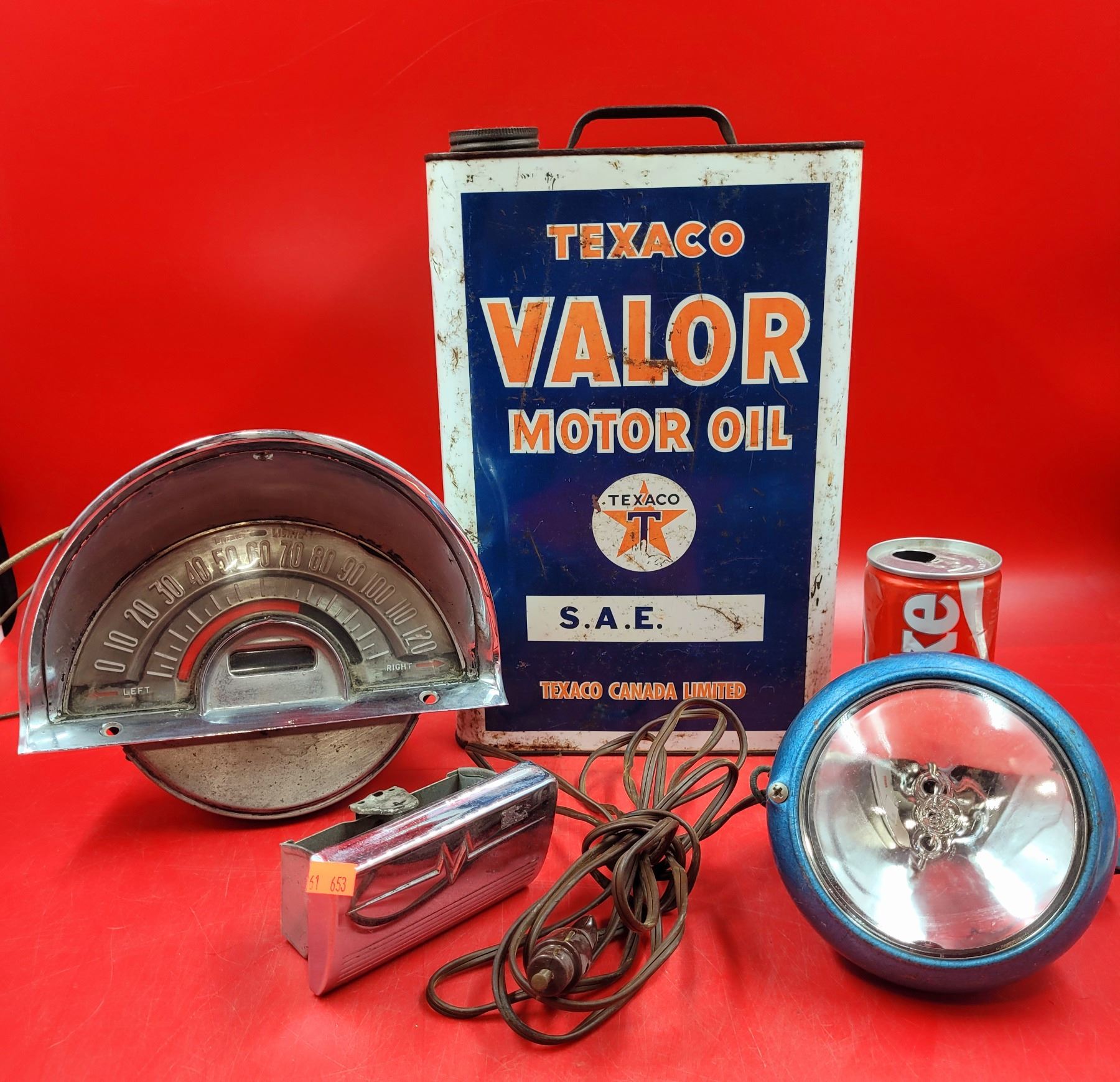 VTG Texaco Valor Motor Oil Tin, Speedometer, Ash Tray & Bulb