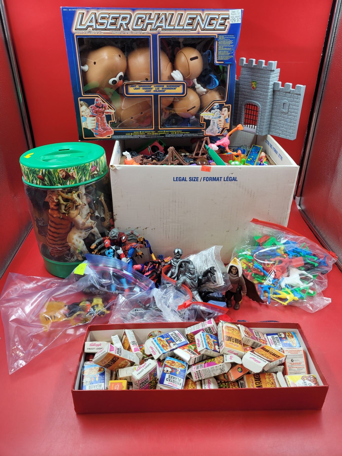 VTG Toy Lot (Safari Animals, Potato Heads, Mini Cereal Boxes, etc.)